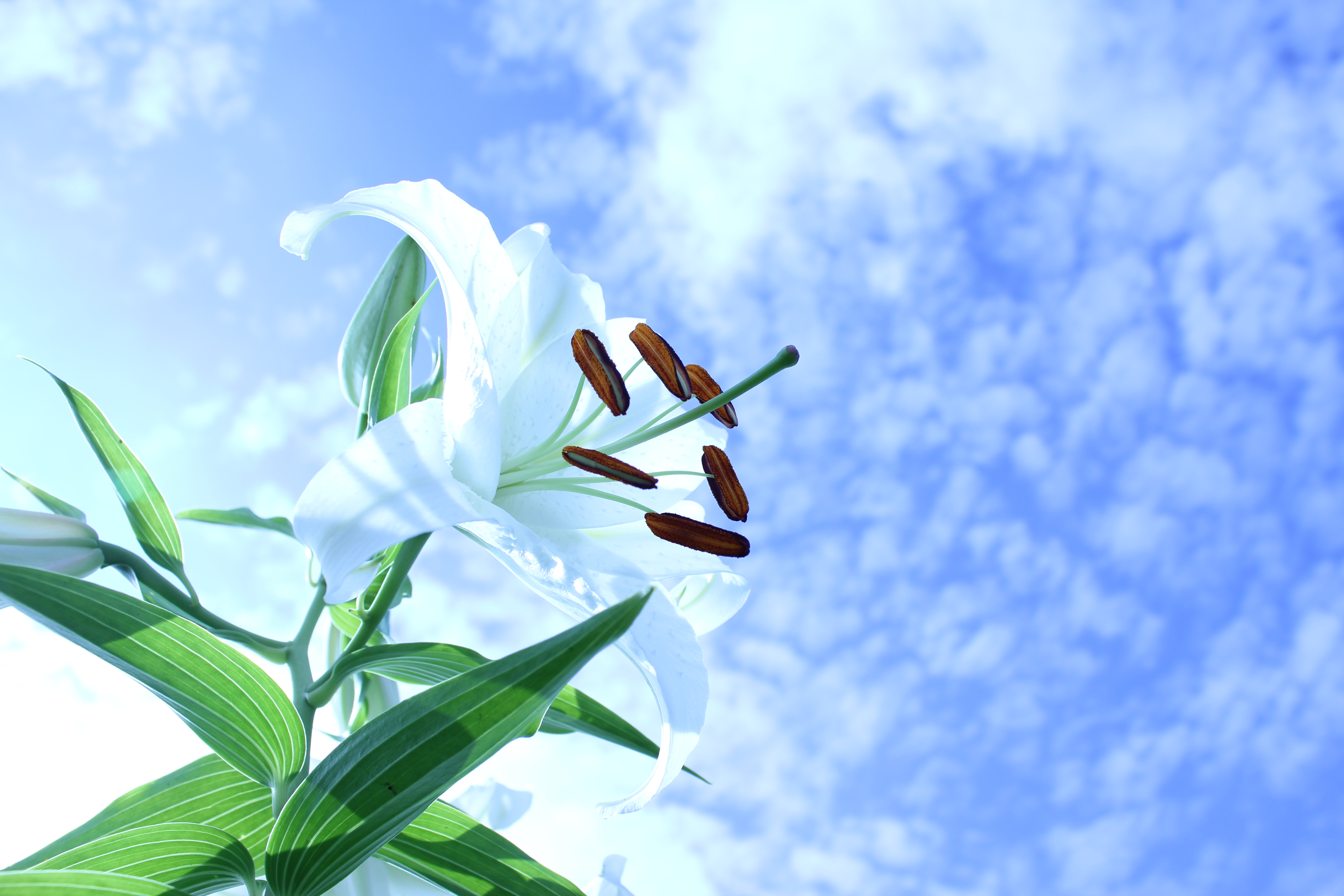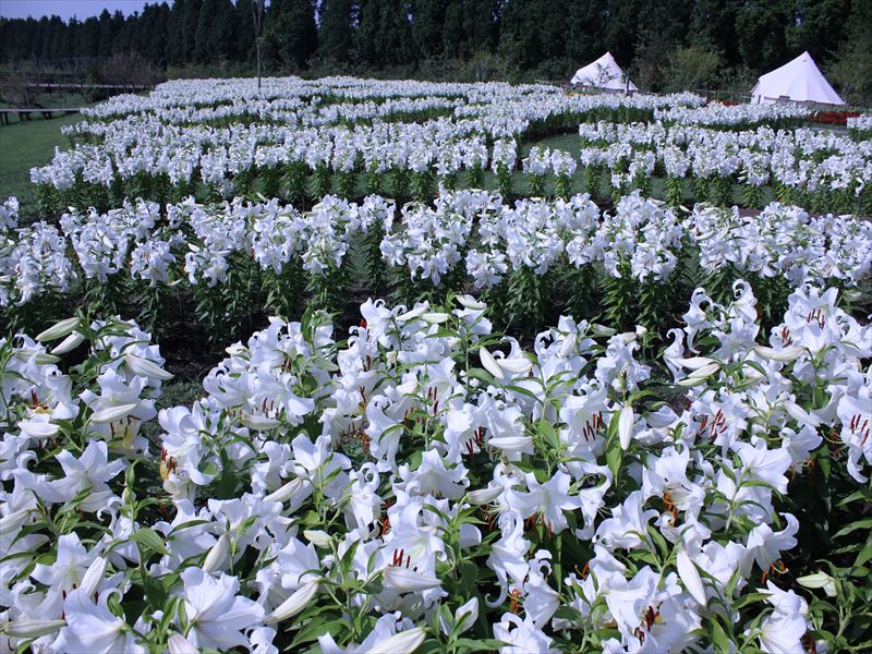 ・ 久々の青空にカサブランカのお花が似合います。 ↓ ↓ / カサブランカの優雅で柔らかな香りと、 純白のカサブランカがこの暑さを和らげてくれます。 ↓ ↓ ・ 6,000本のカサブランカが現在満開です!! ↓ ↓