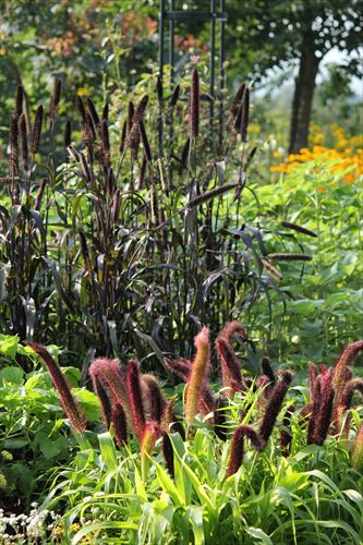 ・ 夏から秋にかけてガーデンで大人気のミレット。 久住ガーデンでみることができます。 園内には2種類植えており、 写真奥:ミレット・パープルマジェスティ 銅色を帯びた葉と長く黒い花穂が目を引く。 写真前:ミレット・ジェードプリンセス 葉は明るく、黄緑色で夏のガーデンにオススメ。 ↓ ↓ ・ /
