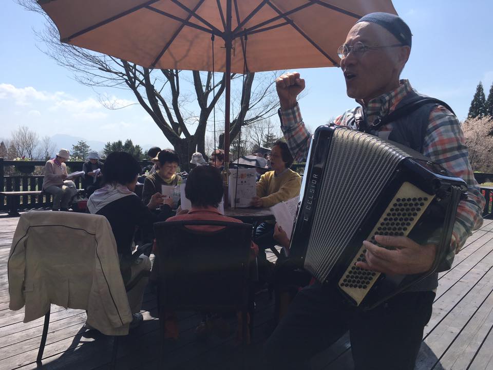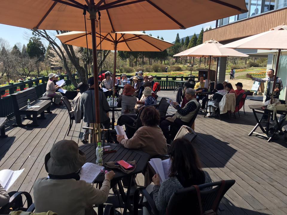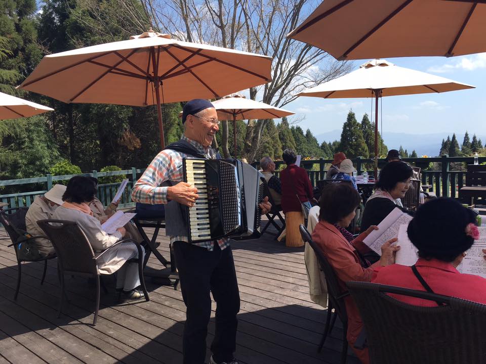 ・ 神戸より総勢39名様のご来園となりました。 その旅の内容は、、、、、、 ↓ ↓ ・ うたごえ喫茶の店 珈琲ラウンジ あかとんぼ オーナー / アコーディオン奏者 米村さんと巡る 大分合唱の旅。↓ ↓ ・ 童話や歌謡など、なんだか懐かしい歌が響き渡り、 とても穏やかで、素敵な時間が流れました。 ↓ ↓ ・ 動画での様子。 ↓ ↓ / /