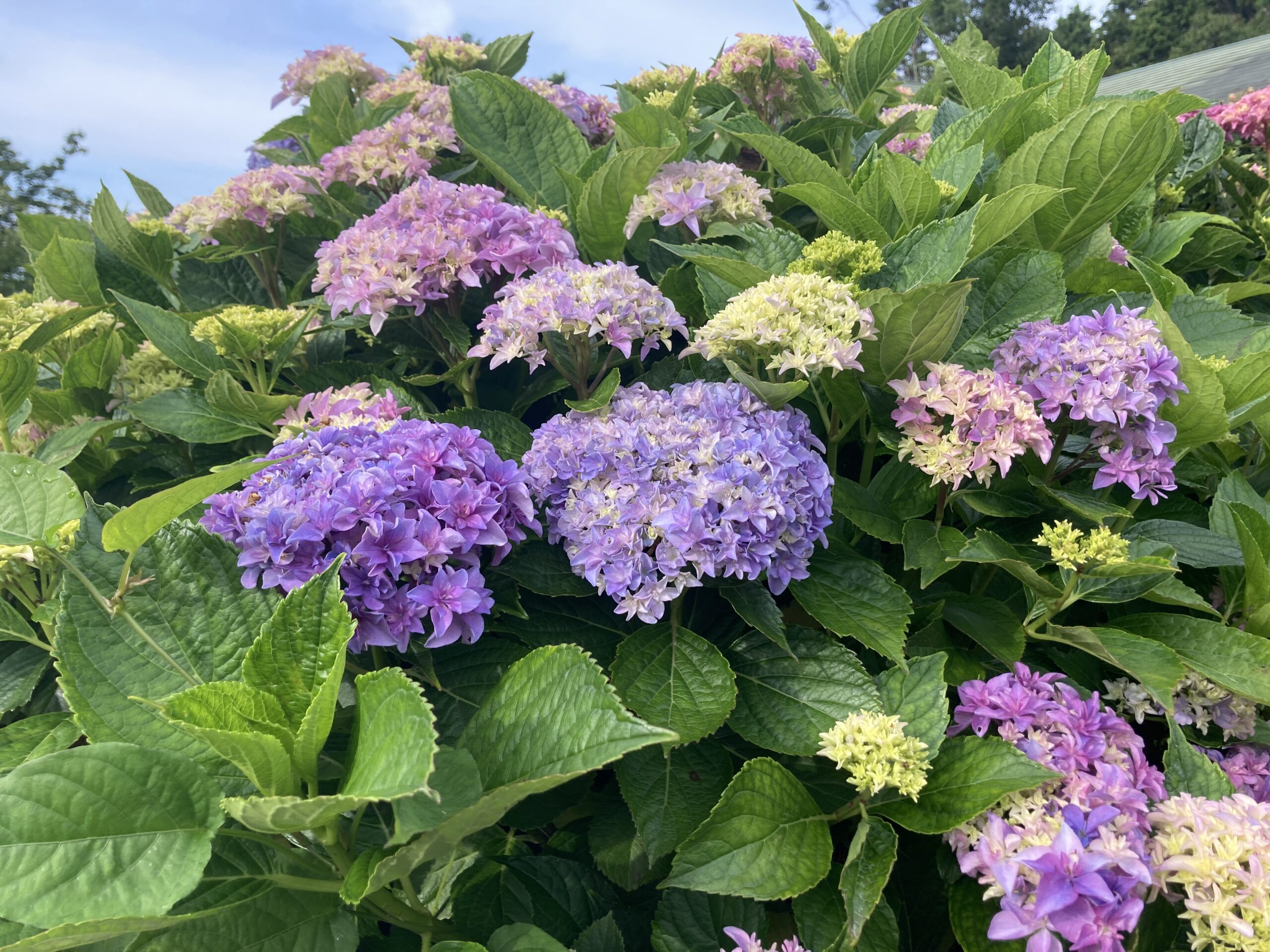 園内各所であじさいが見頃を迎えつつあります。 アナベル(アメリカあじさい)は見頃です。 園内各所の園路沿いで見頃を迎えつつあり、今年は花数も多くきれいに咲いています。 クレマチスガーデン近くでは山あじさいが見頃です。