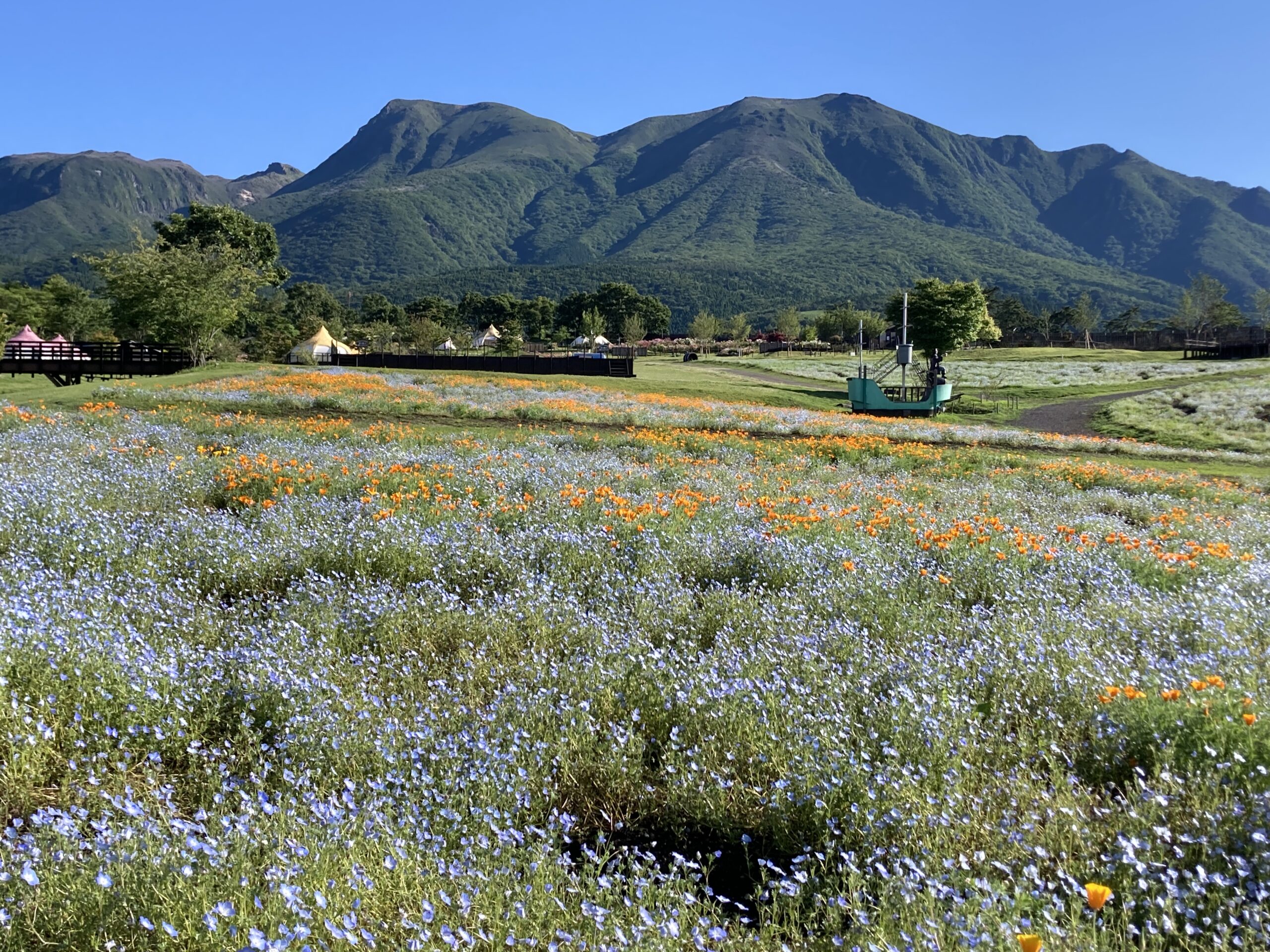 ネモフィラはほぼ終了!昨年のこぼれ種のハナビシソウと共演中!