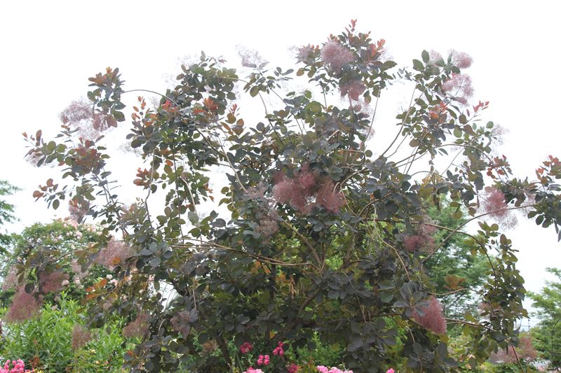 自由に伸びる枝が芸術的な スモークツリーの季節となりました。 新芽の芽吹きに美しい花や紅葉が楽しめて、 移りゆく季節を体感できるのが スモークツリーの魅力のひとつです。 こちらがお花です* * スモークツリーと呼ばれるだけあり、煙を連想させる花の姿です。 英名:Smoke Tree /和名:煙の木 と言うように、 世界各国で煙をイメージした名前で呼ばれているようですね。 久住ガーデン/ローズガーデンにて見ることができます。