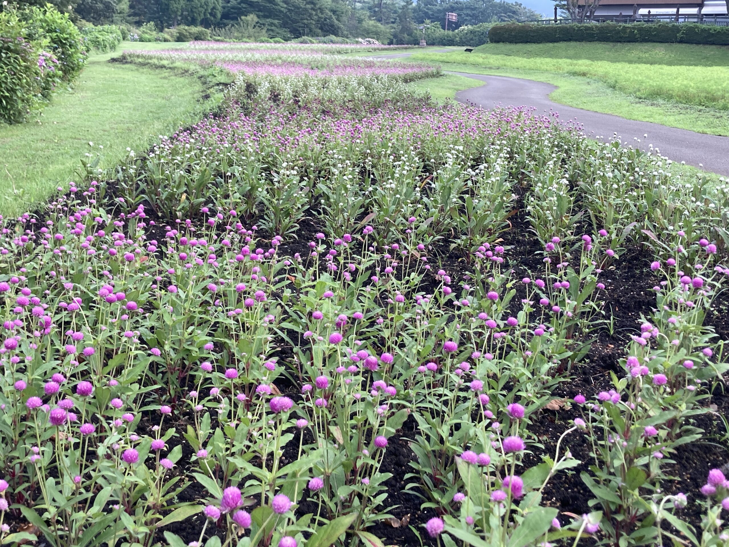 早めに植付が終わっていた千日紅とベゴニアが少しずつ色づき始めました。 写真ではわかりずらいのですがベゴニアは今年は例年の赤とピンクに 加え白を植え込んでいます。 今週からそよ風の丘でサルビアの植付がスタートしました。 少数精鋭で園長も頑張って植付に入り1日で半分も植付してしまいました! でもまだ半分残っています。スタッフの頑張りに感謝です。 今年もトリコロールカラーのサルビアがキレイに咲くように願って。