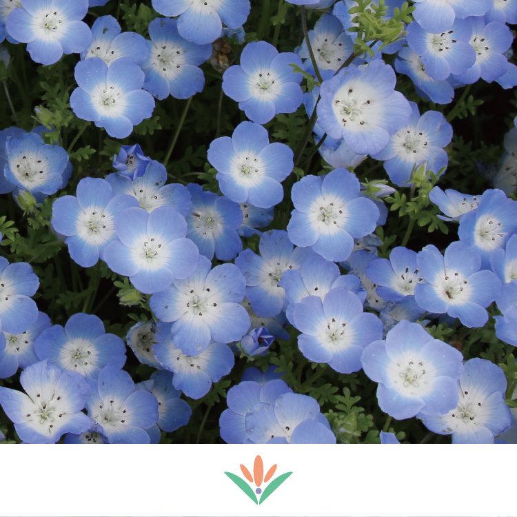 **くじゅう花公園の過去の写真をお届け** こちらは近年人気が高まっているネモフィラ。 青いお花はとても印象的ですよね。 そんなネモフィラの開花に合わせて、 今年もネモフィラフェスティバルを開催いたします。 開催予定日:4月29日(土)~5月28日(日)(予定) ※気象状況(開花状)により変更になる場合がございます。