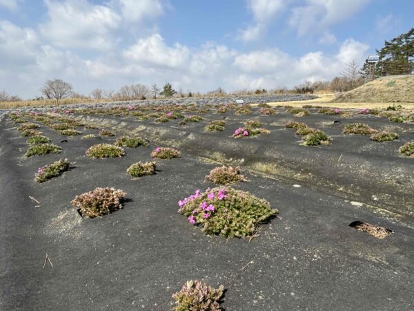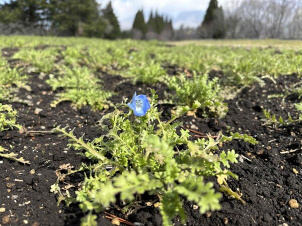 園内で一番最初に植付したエリア「そよ風の丘」 ネモフィラがポツポツと咲き始めました。 植付後に雪が積もって心配していたエリアですが、順調そうです。 朝早いのでまだ開ききっていない状態です。 シバザクラも少しずつ咲き始めました!今年は開花が遅れています。 みはらしの丘の上にある水仙もやっと開花。