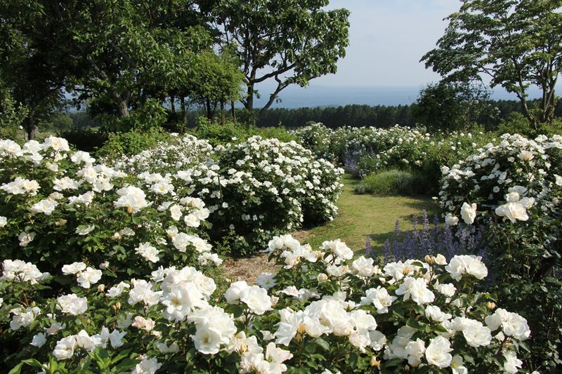 ・ ゆっくり歩きたい、ホワイトローズガーデン。 ここのホワイトローズガーデンは爽やかな雰囲気です** 白バラには透き通るような純白のバラもあれば、 クリームイエローがほんのり入ったバラも。 控えめな色調がかえって目を引く存在になっています。 ↓ ↓ ・