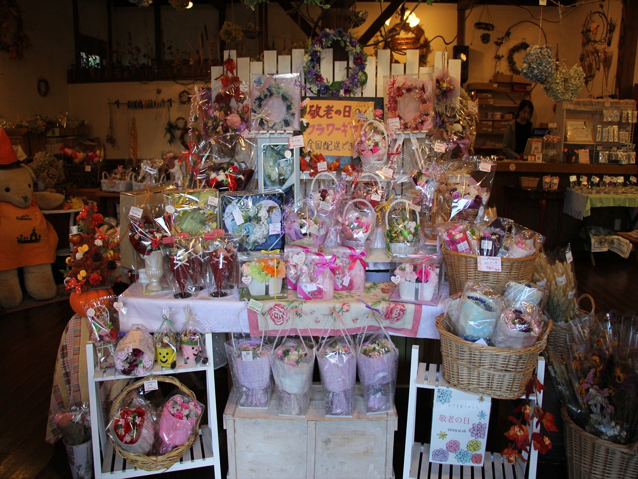・ 敬老の日はフラワーギフトを贈りませんか。 ドライフラワーと雑貨のお店「ローズドメイ」の オリジナル アレンジメント がおすすめです** / ・ お花に囲また癒しの店内には、 ハロウィン仕様のアレンジメントや ・ ・ ドライフラワー花束など、素敵な商品が並びます。