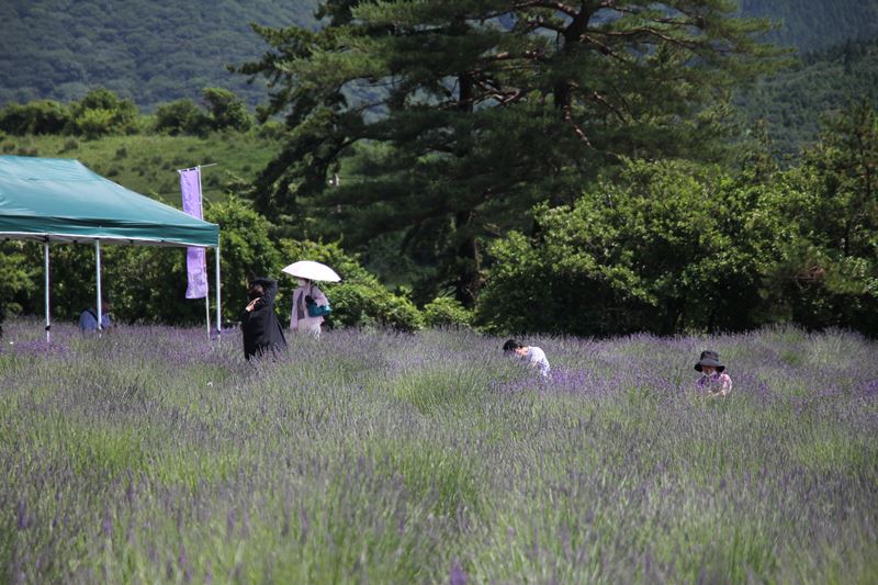 ハーブの女王ラベンダーの季節となりました。 心地よい香りが魅力のハーブです。 ラベンダーの丘は、 香りとともに爽やかな風が吹き抜けます。 今日は天候に恵まれ、 ラベンダーの摘み取り日和となりました。 摘み取ったラベンダーは 風通しのよい日陰にさかさまにつるし、 ドライフラワーにして楽しんでください♪** ※梅雨の季節。カビがこないよう気をつけてくださいね。 楽しみ方は様々、 ラベンダースティックやリース。 乾燥してポプリに!! 香り袋に入れて楽しむ方や便に入れて楽しむ方。 旅の思い出をご自宅で、 アレンジして楽しむのもおすすめです。