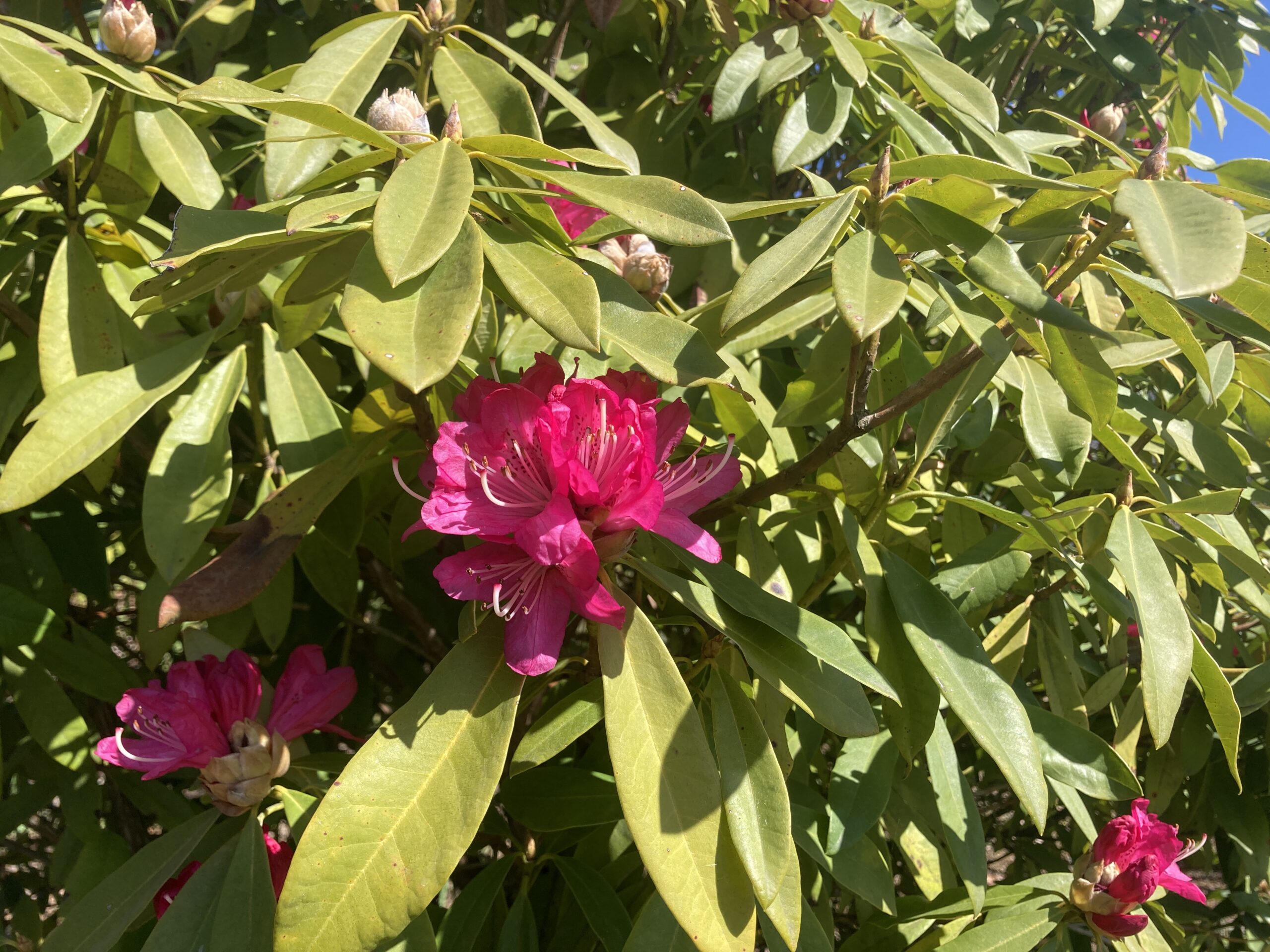 今年も2月、3月が暖かい日が多く開花が早まりそうな感じです。 近づくと花芽が隠れていました。 くじゅうガーデンはまだ花芽が上がって来ていないようです。 原種のチューリップが数輪開花しています。 くじゅうガーデンではムスカリやイングリッシュデージー、ハナニラなどが咲いています。 ムスカリ イングリッシュデージー 日当りの良い場所では西洋シャクナゲが咲いていました!