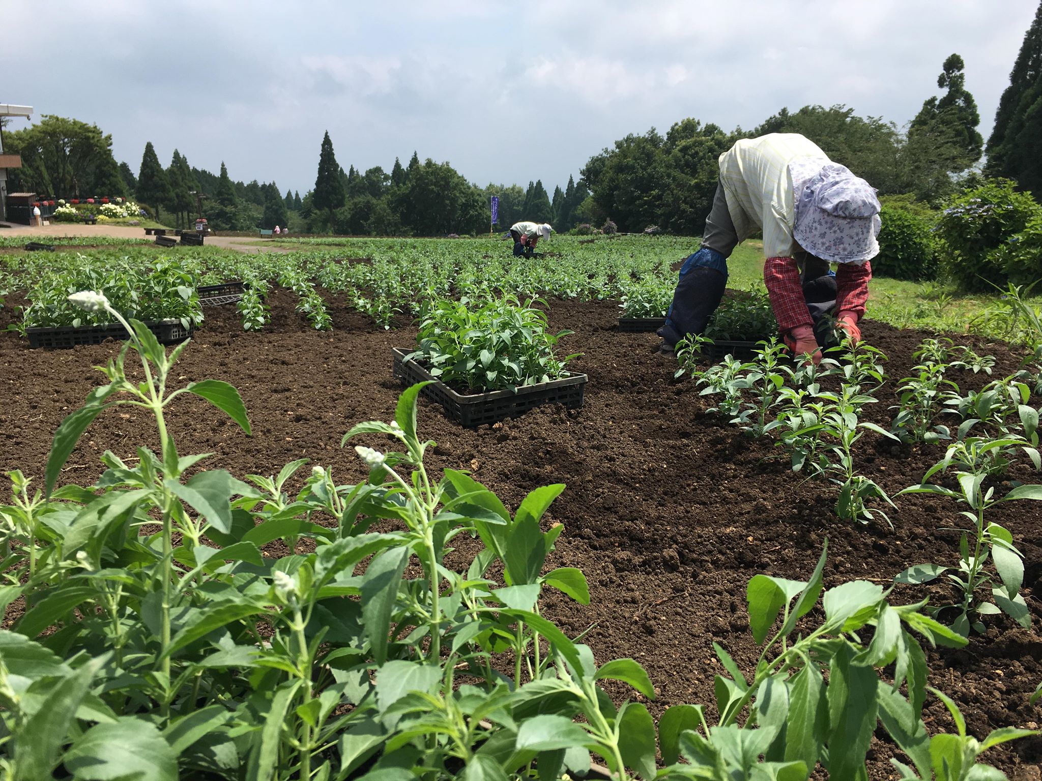・ サルビアの植付け作業が始まりました。 梅雨の晴れ間、、嬉しい事に今日は天候に恵まれ、 着々と植付け作業が進んでいます!! ↓ ↓ ・ 苗の仕上がりが非常によく、 赤・青・白3色の綺麗なサルビア畑が今年も楽しめそうです!! 8月中旬頃から10月下旬頃まで、楽しむ事ができ、 秋の澄んだ空気とサルビアのコントラストが、 疲れた夏の体を癒してくれますよ♪* ↓ ↓ /