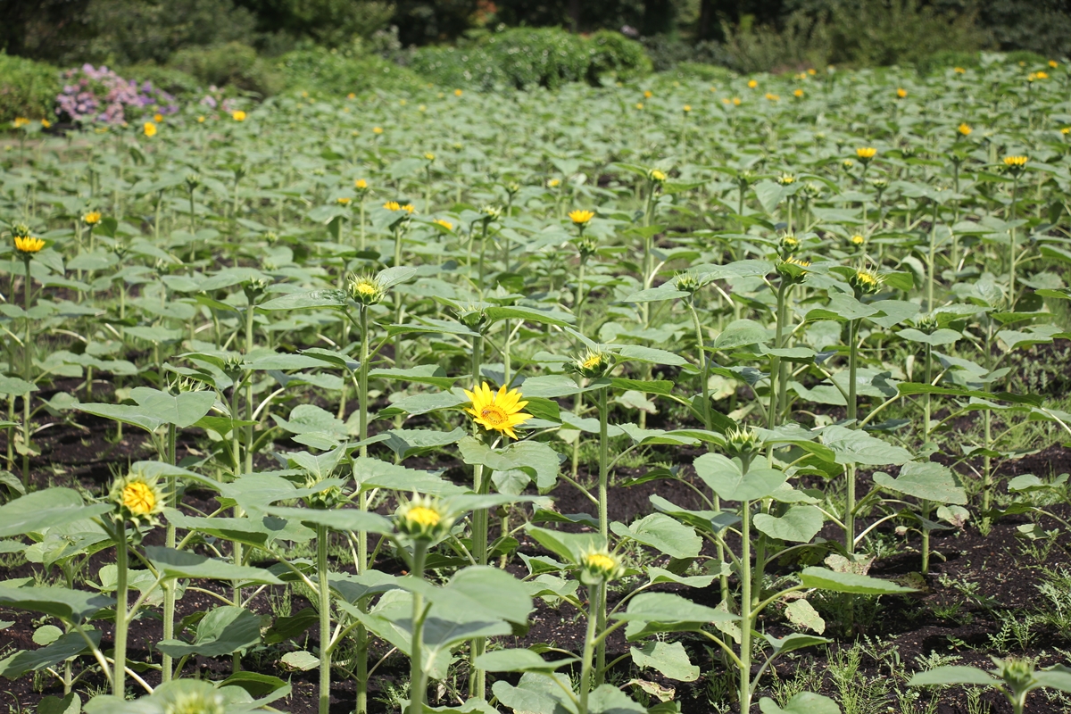 ひまわりは咲き始めると、一気に見頃を迎えます。