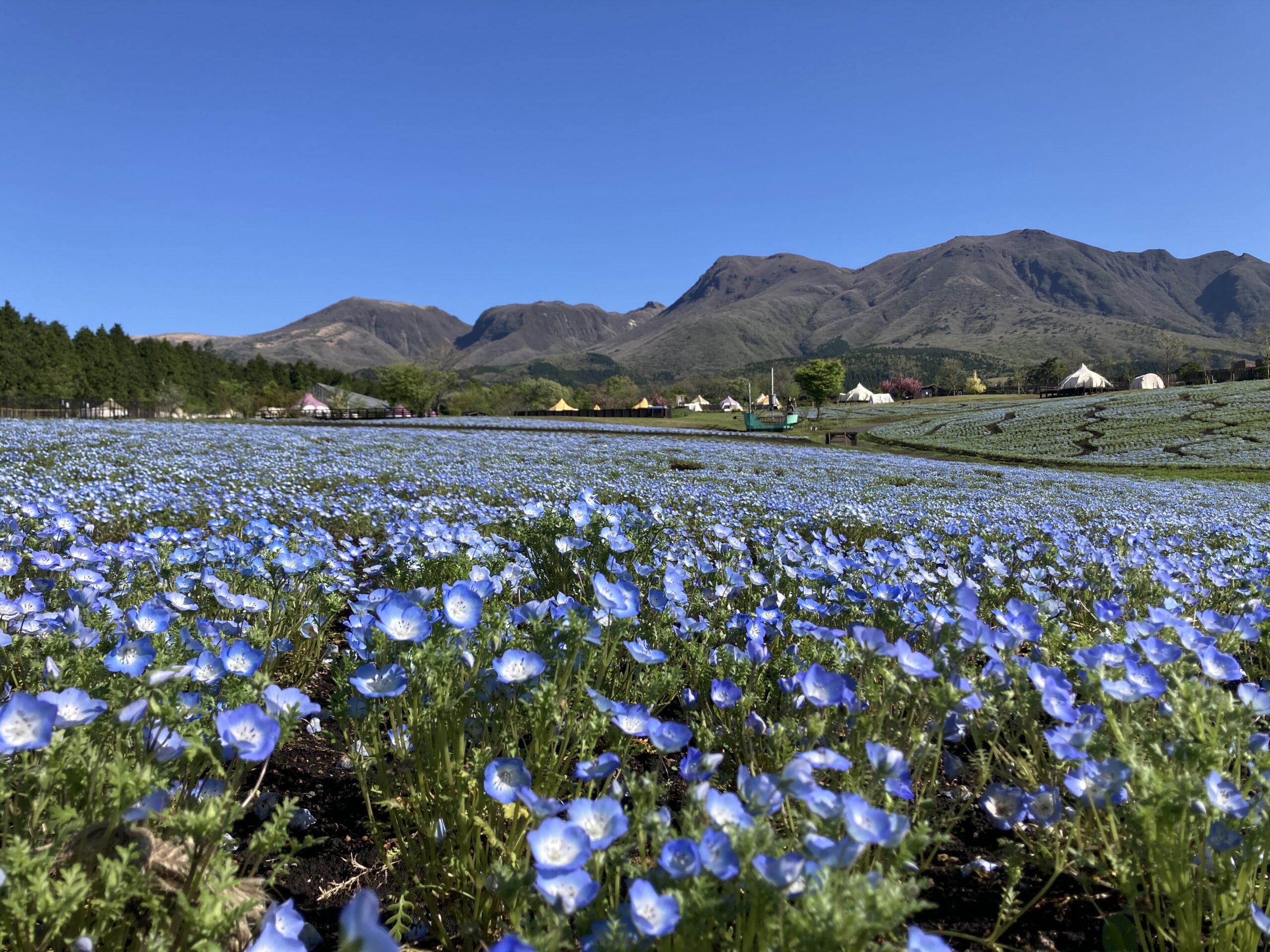 高原の彩りではネモフィラが5分咲き