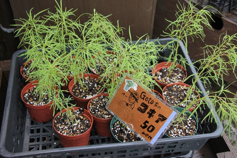 グリーンハウスアンティルでは、コキアの苗を販売しております。 目立ちにくいですが8月頃にはお花も楽しめますよ。