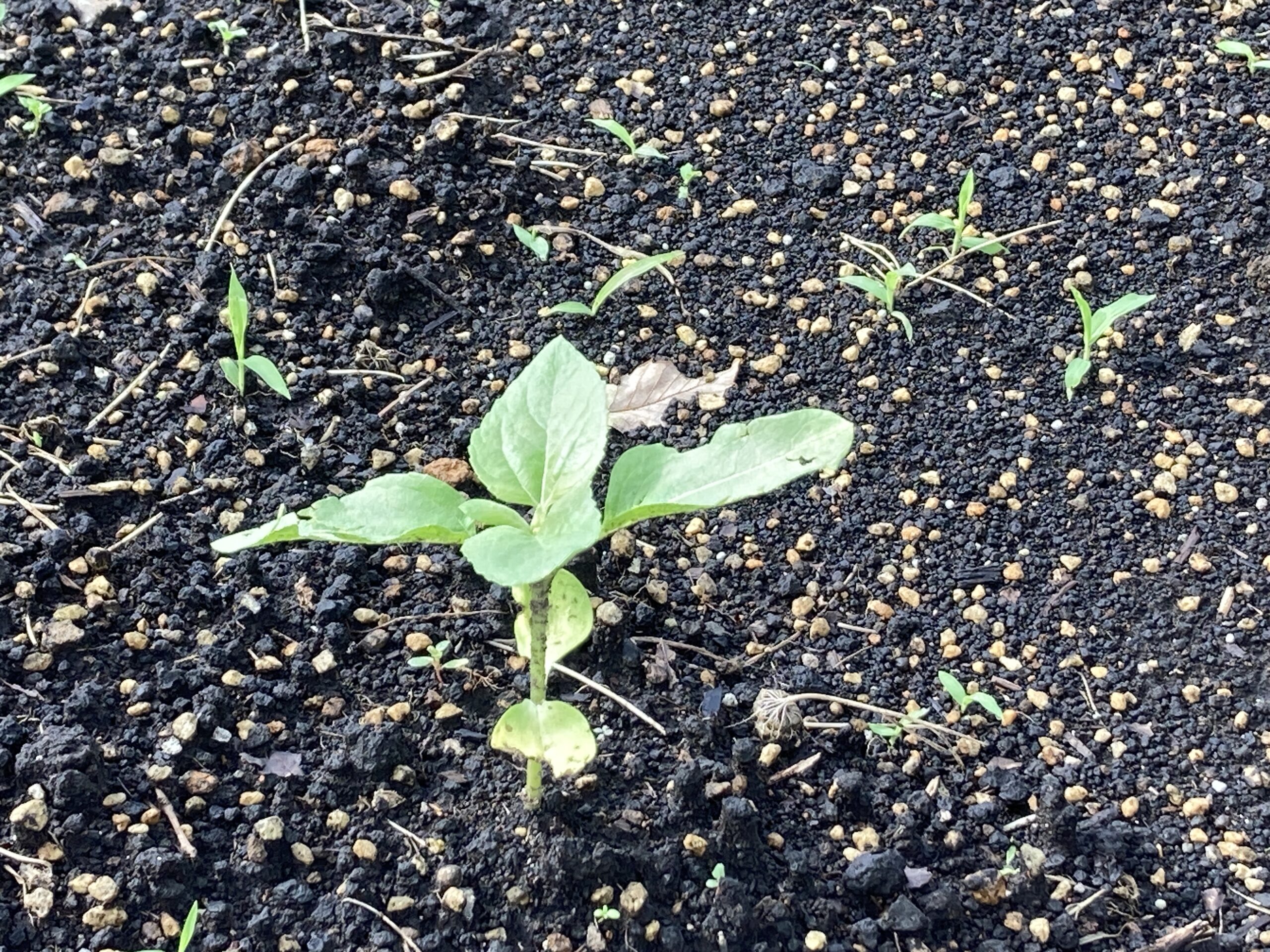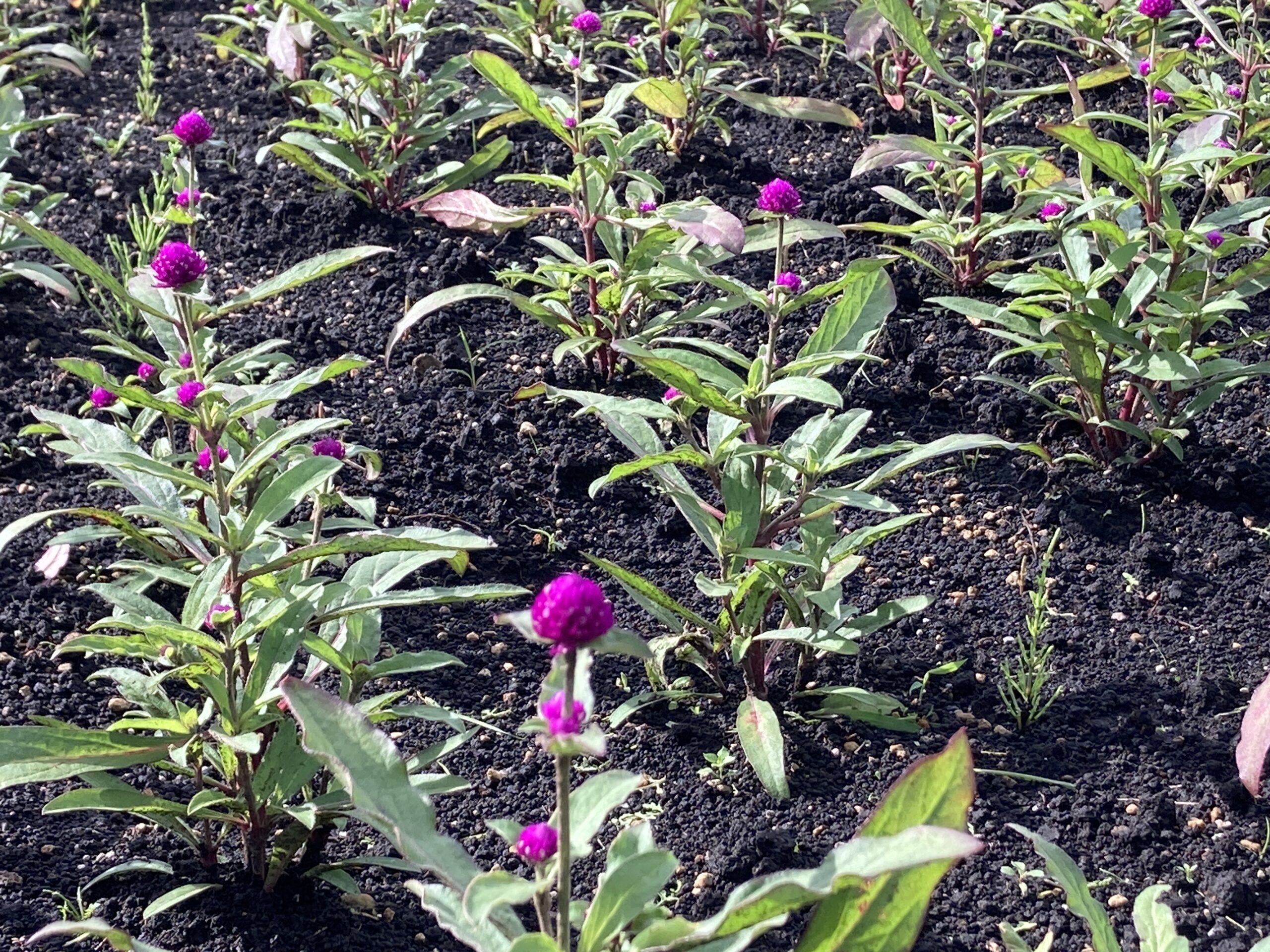 少し前の雨で被害が無かった畑では千日紅やコスモス、ベゴニアなどが順調に生育中
