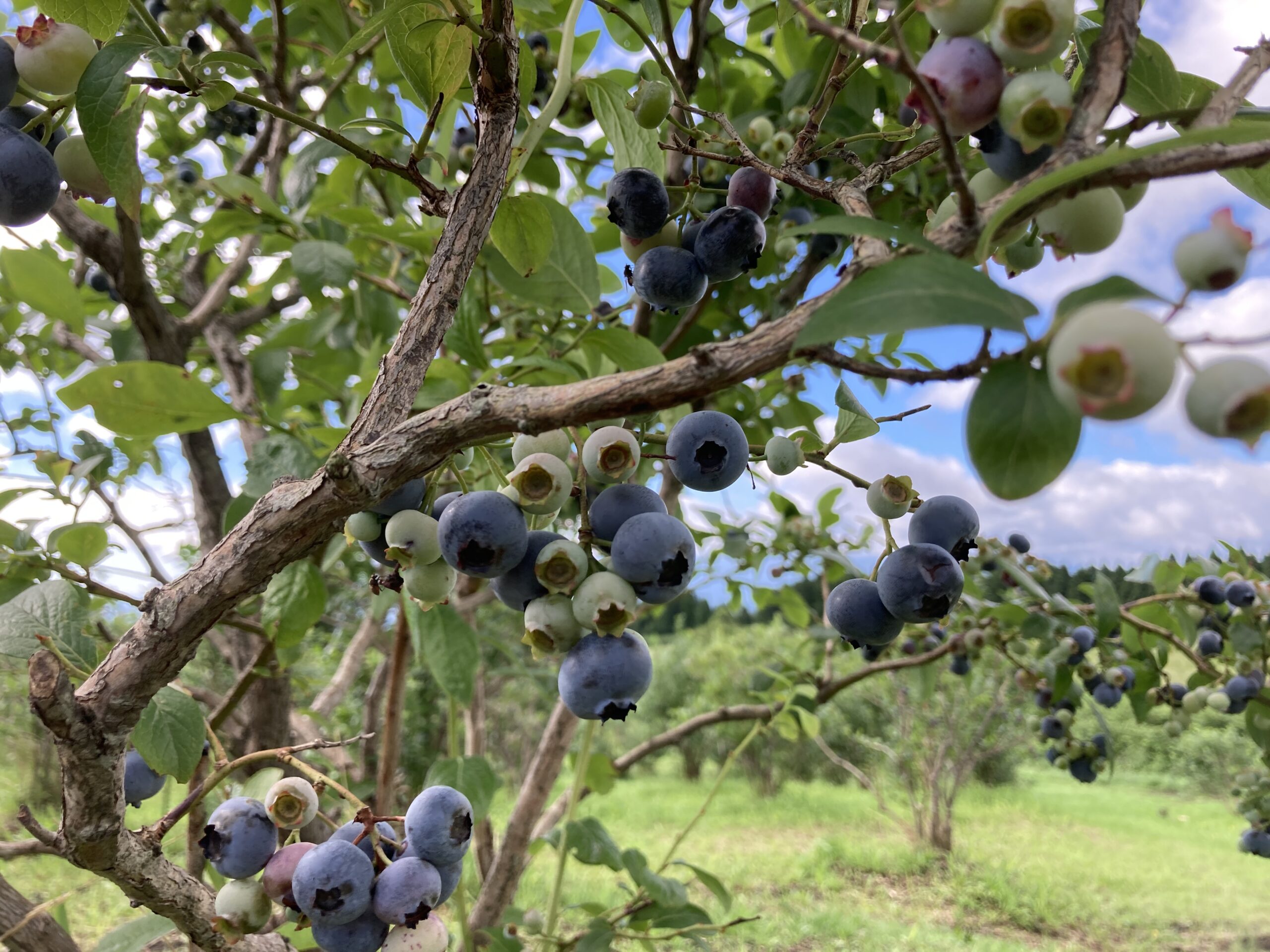 ブルーベリーも雨風に負けずにいっぱい実っています。