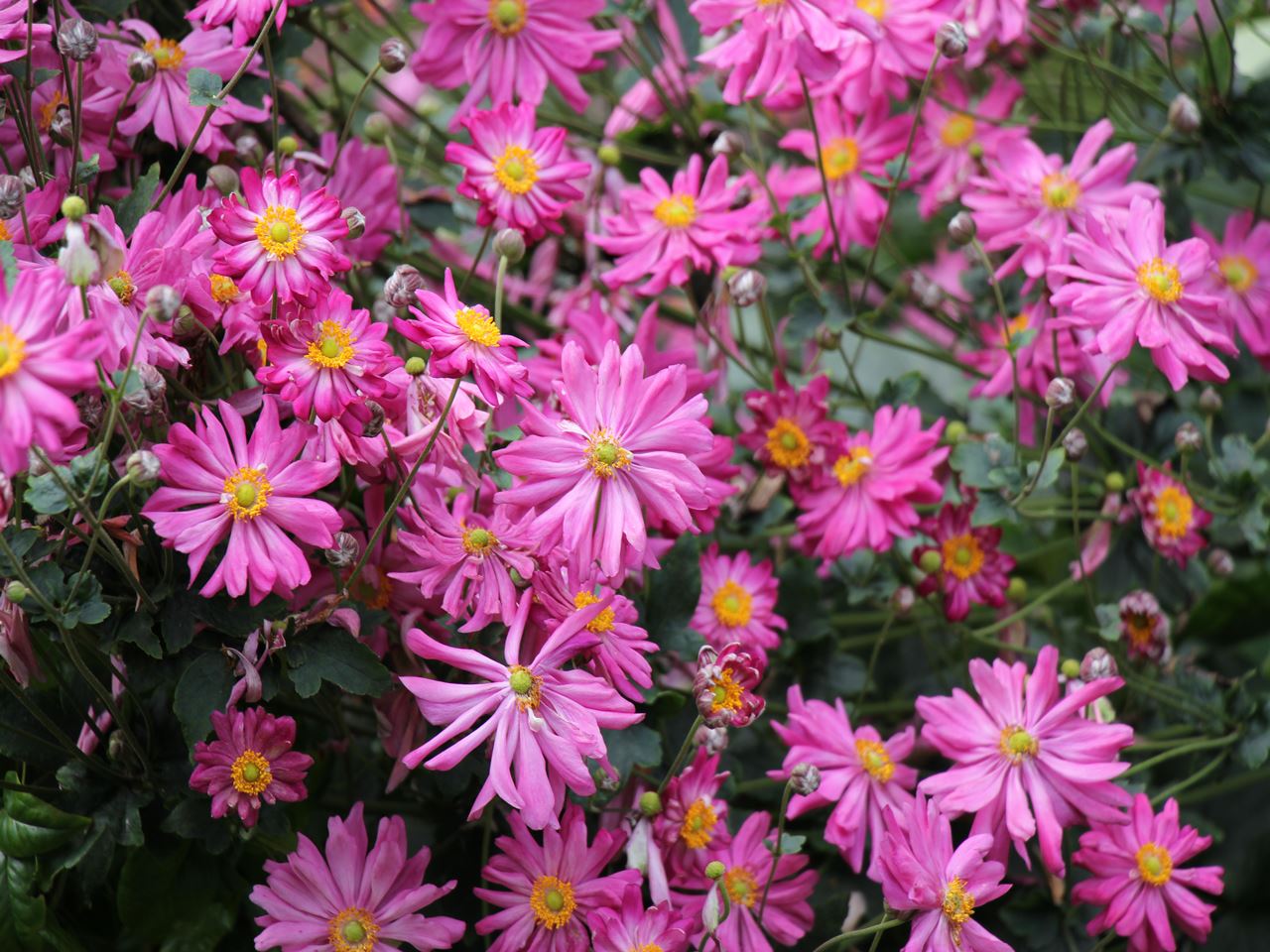 ・ 秋明菊(シュウメイギク)は、 秋の風情を感じさせる優雅な花です。 今年も沢山花を咲かせてくれました ♪** ゆらゆらと風に揺れる姿が優しい印象で、 ガーデンのアクセントになります。 日向や日陰でも元気に育ってくれるので、 ご自宅のガーデンにもオススメです!! 園内クレマチスガーデンにて見る事ができます。 探してみてくださいね♪ ・