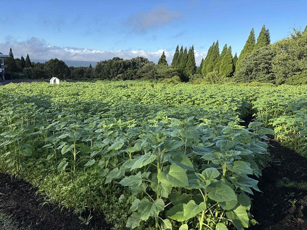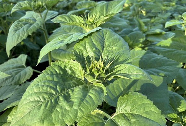 ひまわり「サンフェスタ」です。順調に生育中! 8月上旬開花予想です。 背丈は120cmくらいまで伸びています。今年は伸びが早い! 左が7/28に撮影 右が7/24に撮影 少し蕾が膨らんでいます。順調です。 黄色い花びらが出始めた株もあります。