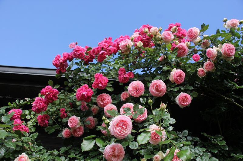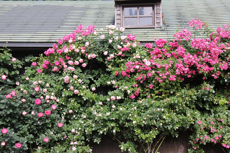 ・ 人気の写真スポット「バラの壁」が見頃を迎えました** 久住ガーデンで見ることができます** この素敵な空間はまるで「絵本の世界」のようです。 ・ 品種はつるバラの「アンジェラ」と「ピエールドロンサール」。