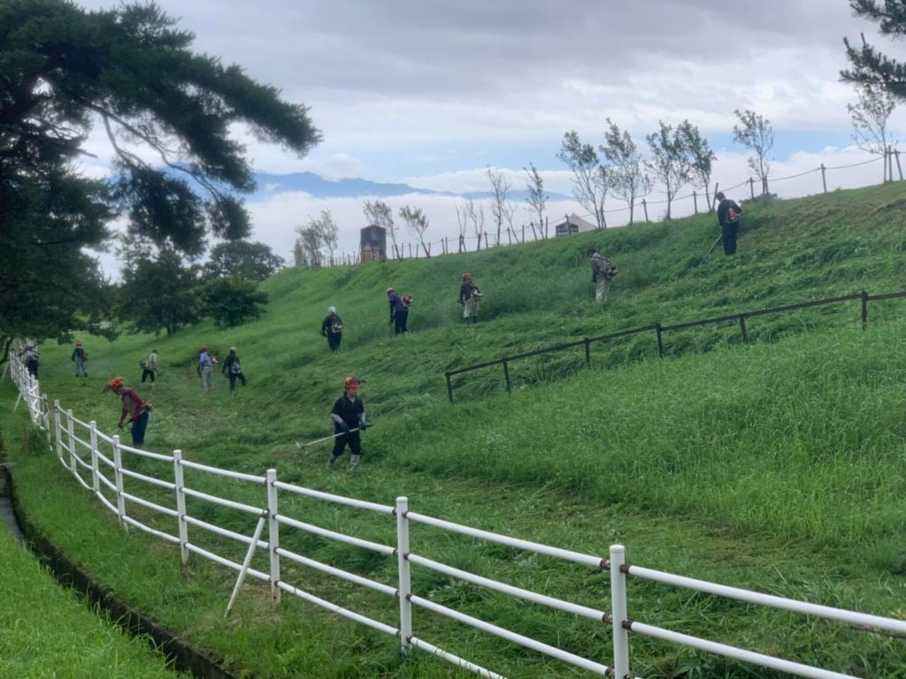 / 地元牧野組合さんの西組牧場様が、 花公園の草刈り作業応援に来て頂きました。 ↓ ↓ ・ 総勢32名の方々が一斉に作業して頂き、 本来なら数日かかるエリアの草刈りが あっという間に終了しました。 ↓ ↓ ・ 速い!綺麗‼︎ さすがプロフェッショナルの方々の仕事は凄いです! 皆様、本当に有難う御座いました!! ↓ ↓