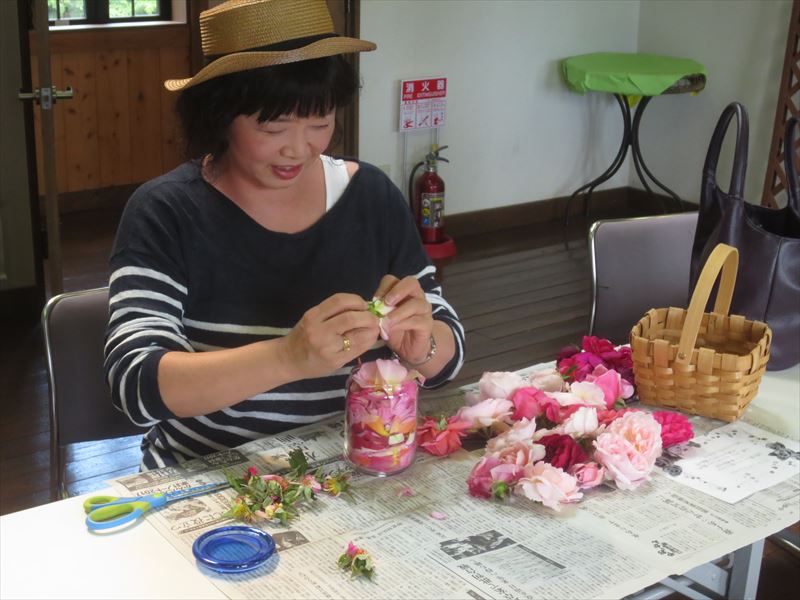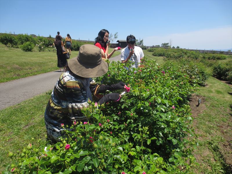 バラを摘み取る作業から始まります。 ↓ ↓