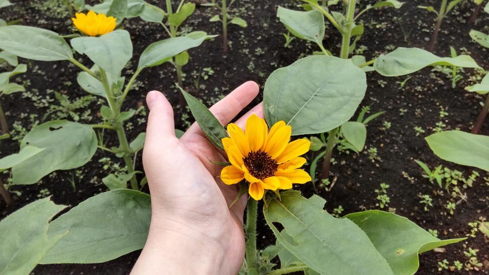・ 背丈は約50cmほどで、完全に上を向いて開花するひまわり。 その名は:サンリッチUP(アップライト) アップライト(Upright)の意味は、直立やまっすぐ立つ。 ひまわりが咲き始めました** ↓ ↓ ・ 通常のひまわりよりは少し、小さめで愛らしい姿をしています。 ↓ ↓