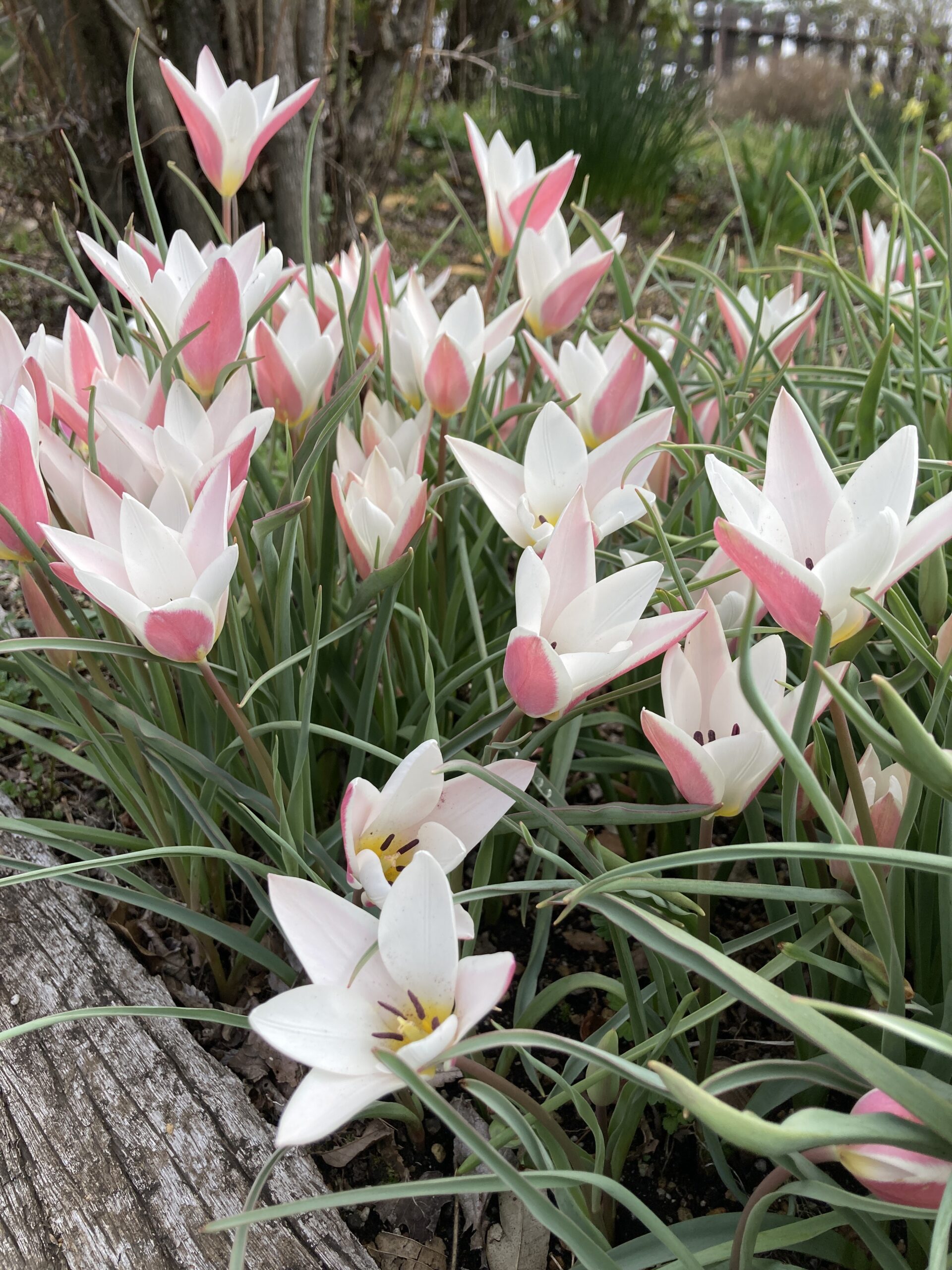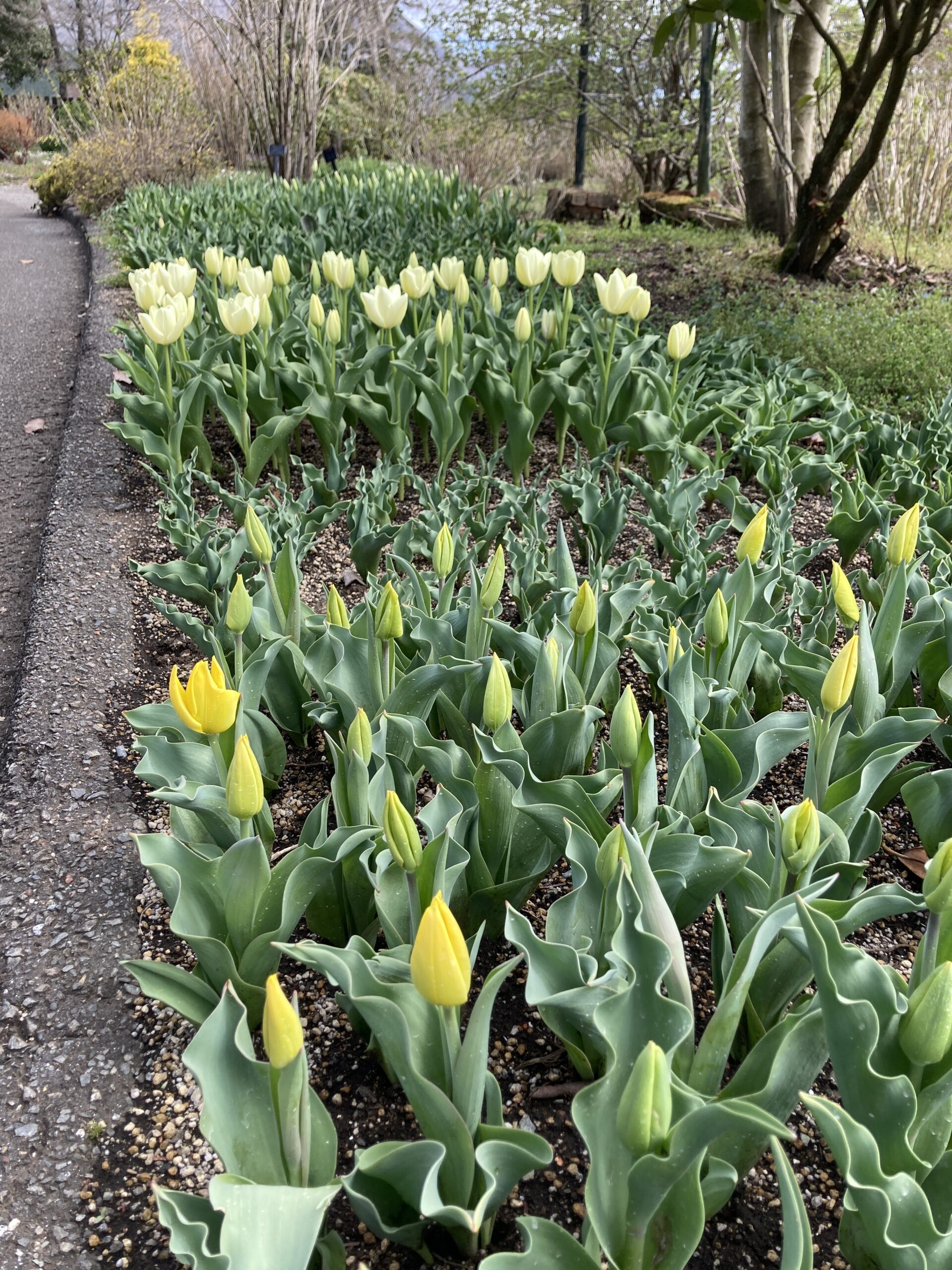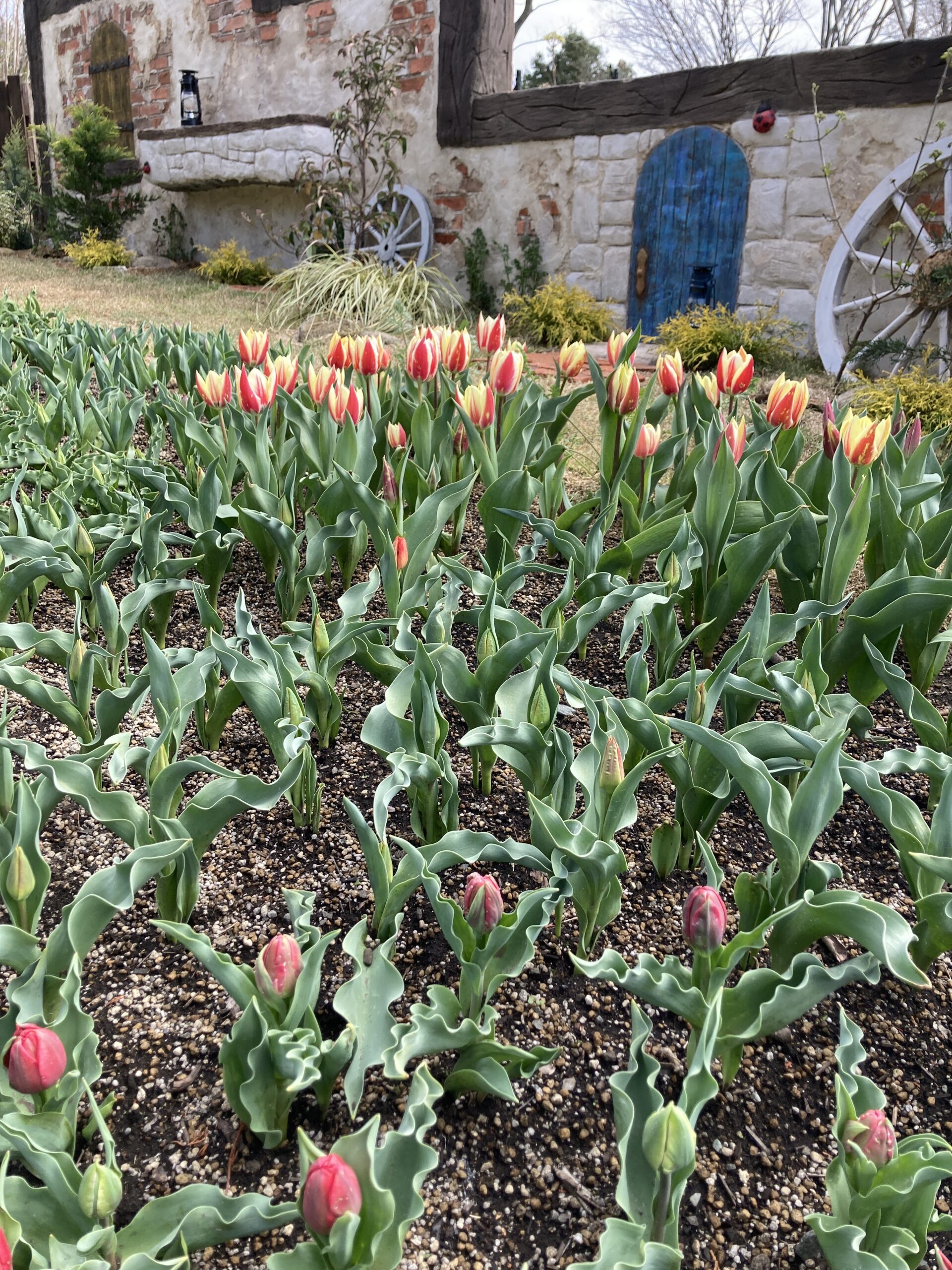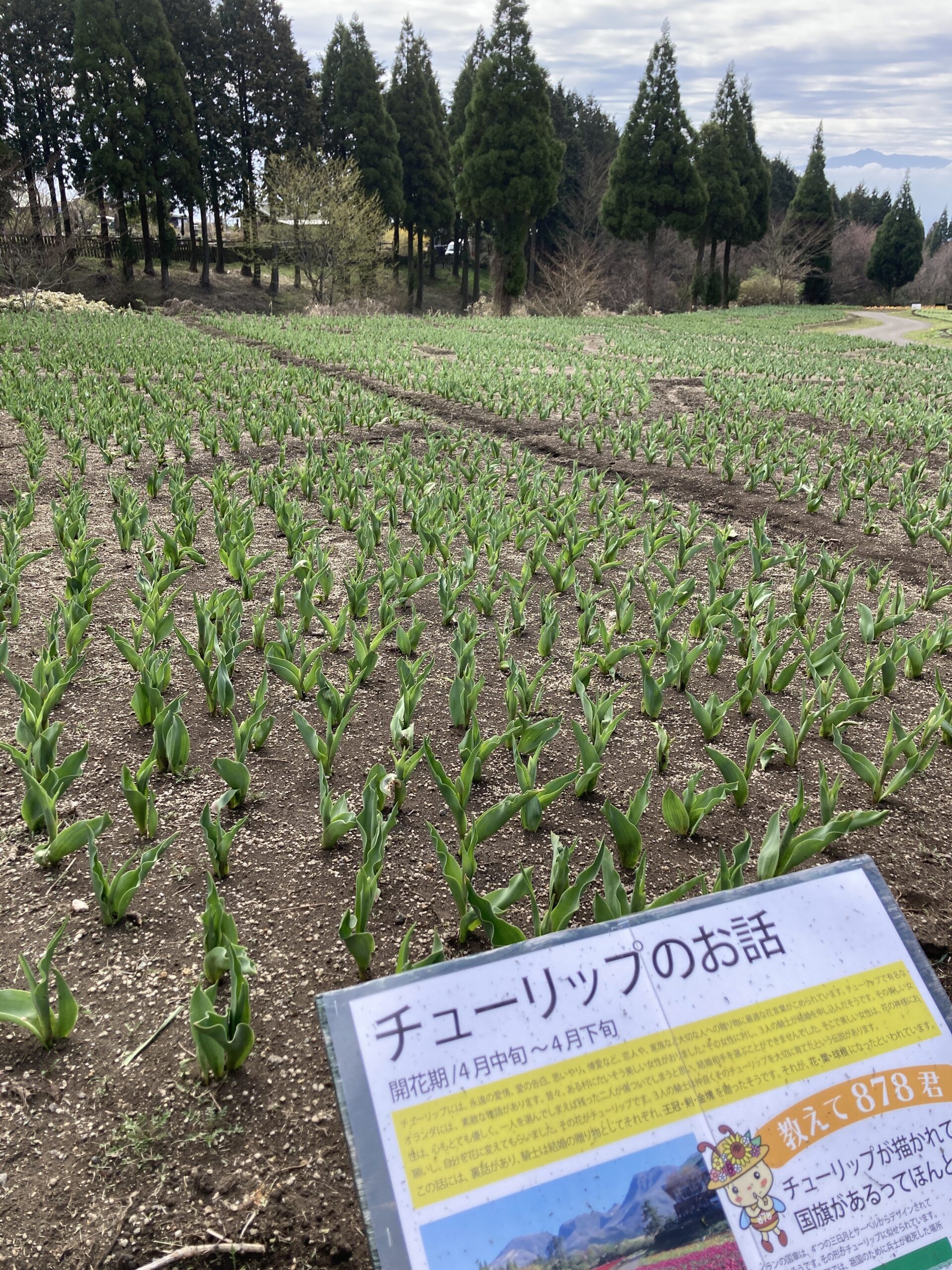 大きな畑のチューリップは小さな蕾が上がって来ています。 全体的には例年通り、4月中旬頃の見頃となりそうです。 くじゅうガーデンのチューリップは品種によっては開花が始まりました。 原種のチューリップも咲き始めています。