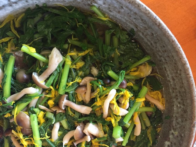 春菊としめじと菊花の浸し ↓ ↓