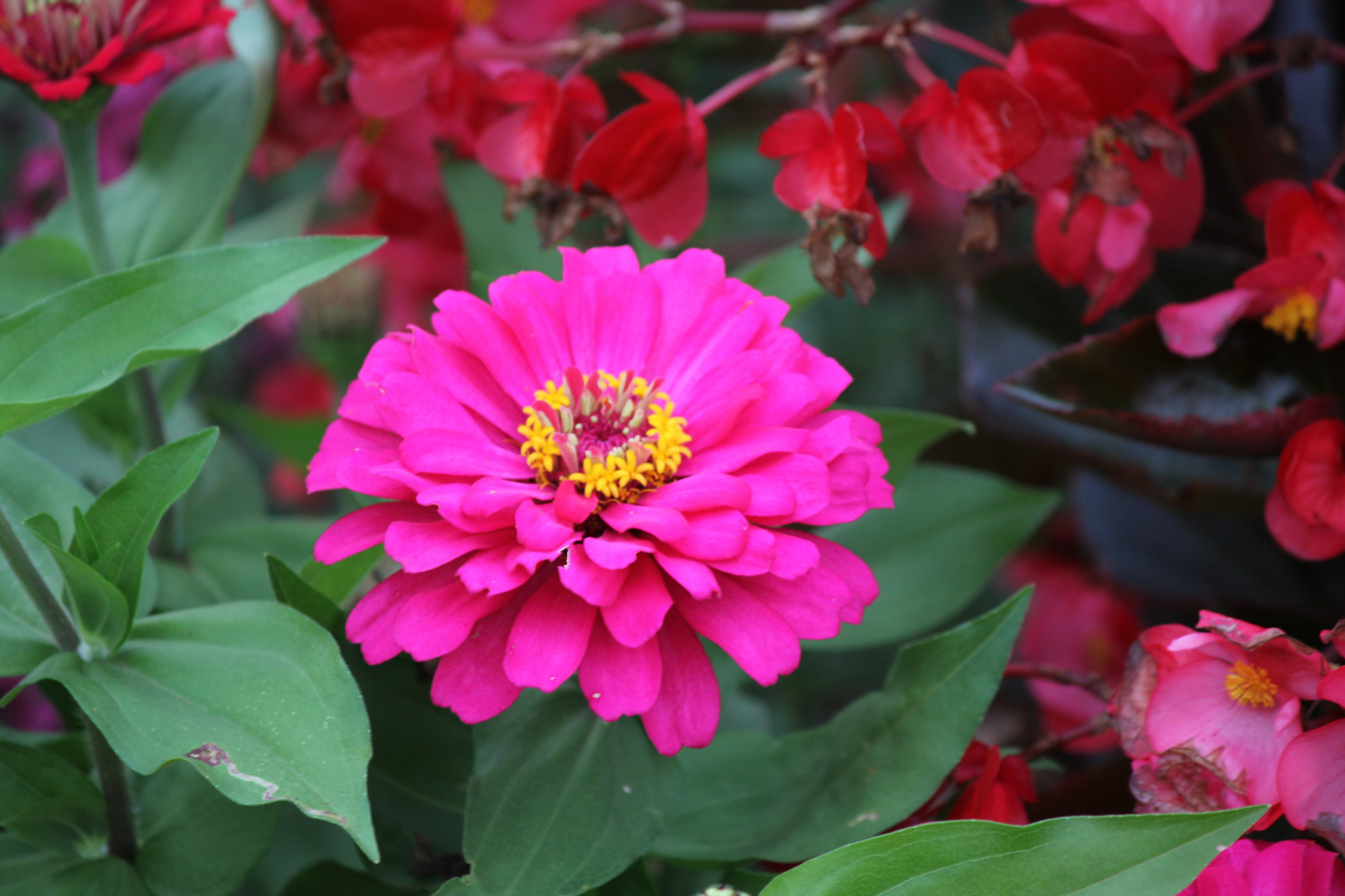 / 黄色・ピンク・白・オレンジなど、カラーバリエーションが豊富で、 初夏から秋にかけて楽しむことができるお花 ジニア 。 まだ、まだ、ガーデンを華やかに彩っています ♪ 和名では百日草と呼ばれており、 開花期間が長いところから、花言葉は「遠い友を思う」とか、、 ↓ ↓ ・・