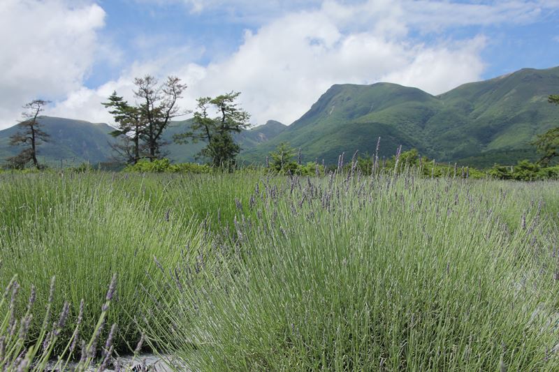 ・ 今日は絵に描いたような、青空と芸術的な雲が広がりました。 ・ くじゅう花公園では8千株のラベンダーが、 現在咲きはじめとなっております。 ・ 品種名はラバンディン。 薫り高く上品なイメージのラベンダーです。 精油分が多く、アロマオイルなどとして珍重されています。