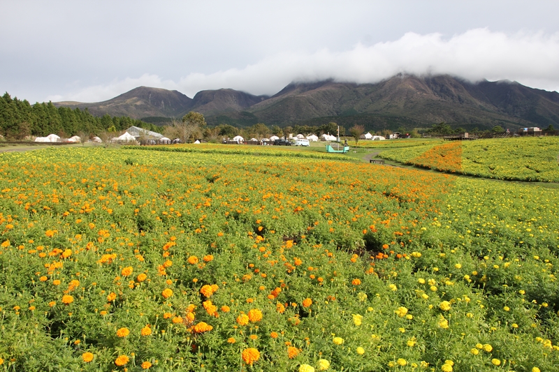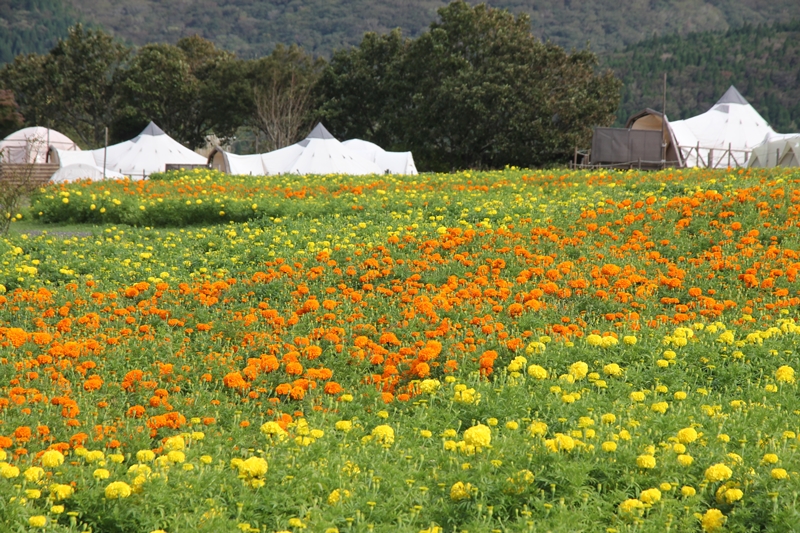 次の週末までには見頃のご案内となりそうです。 オレンジとイエローのコントラストがとても秋らしい花畑になりそうです。