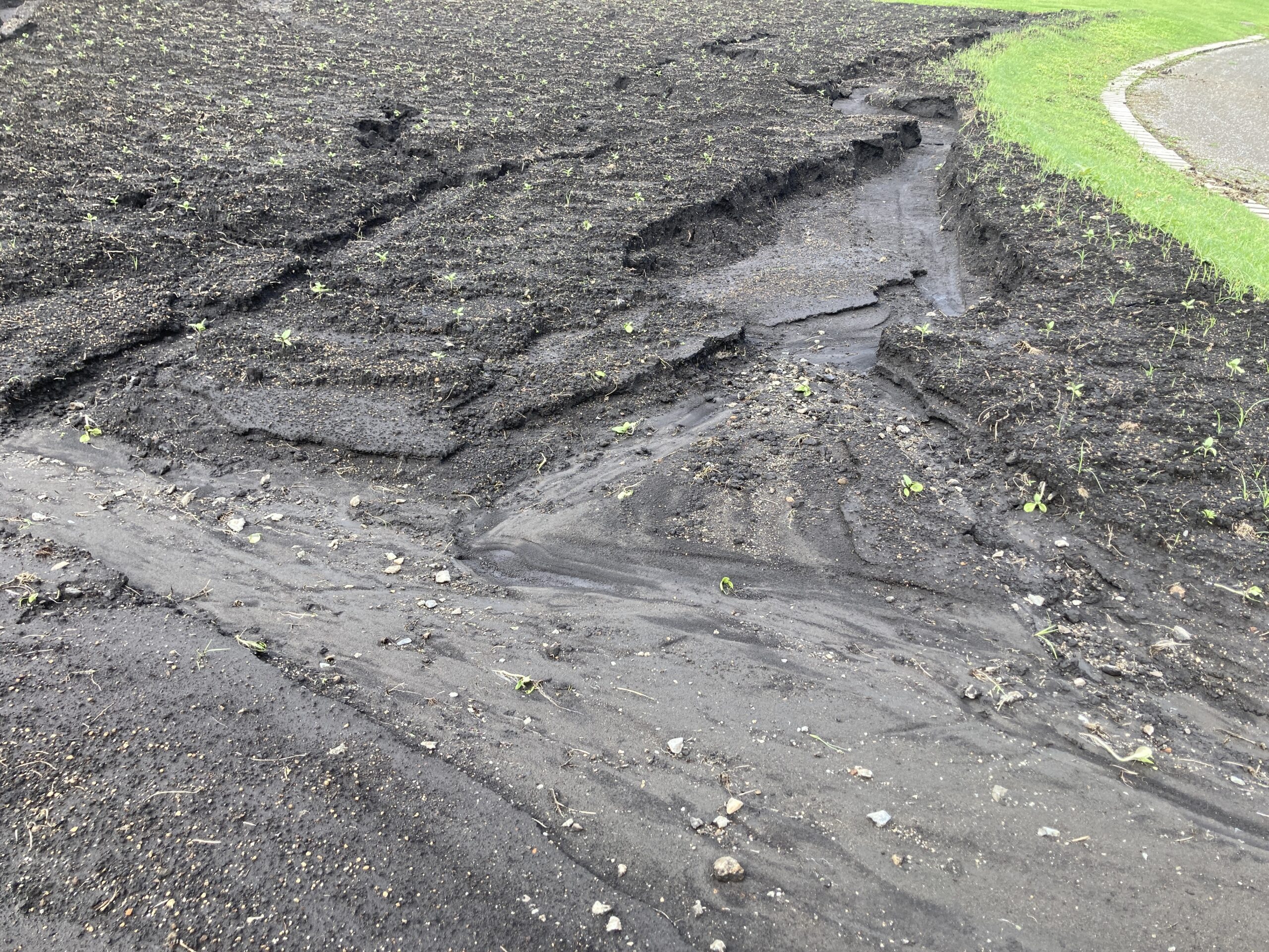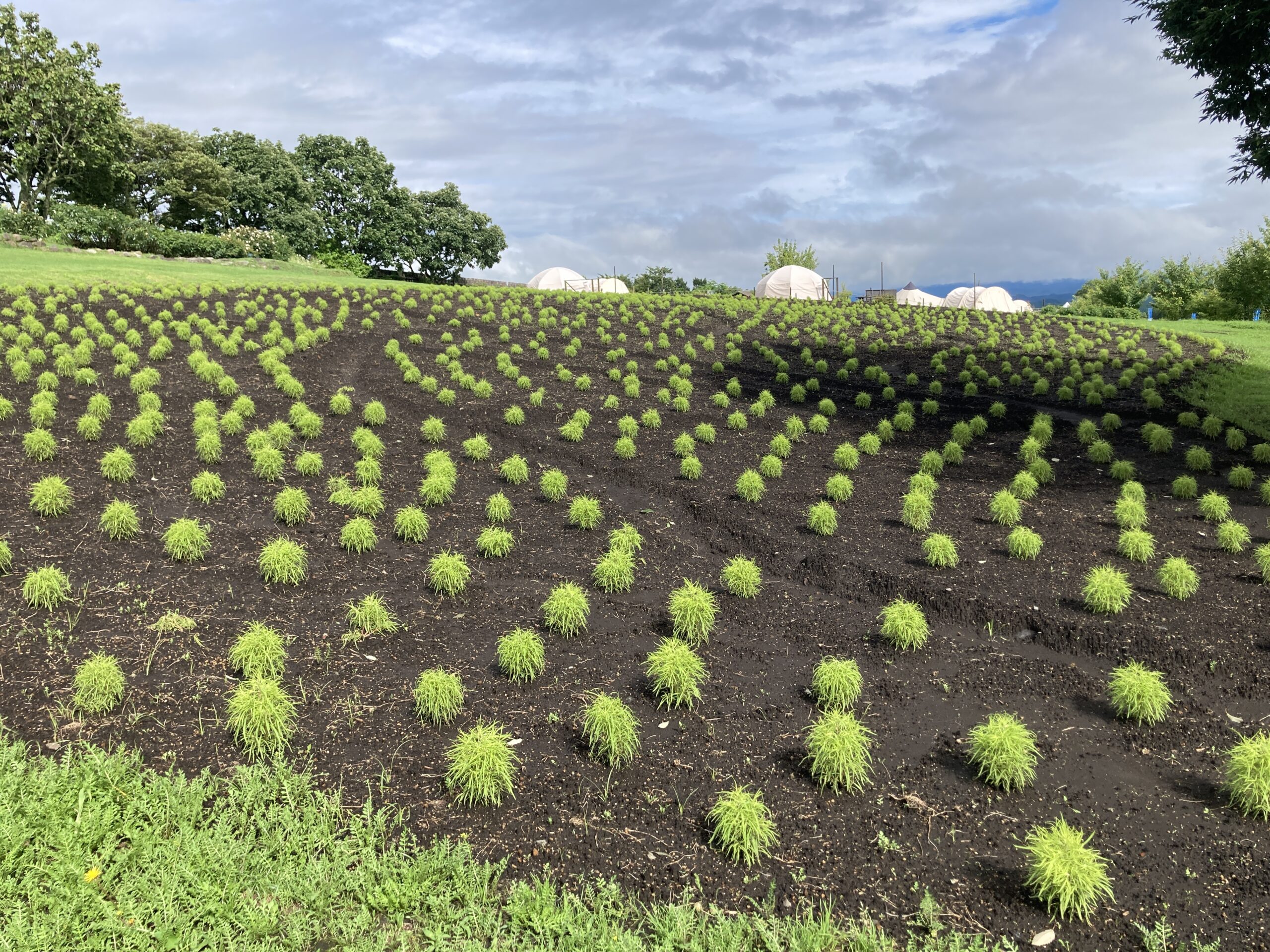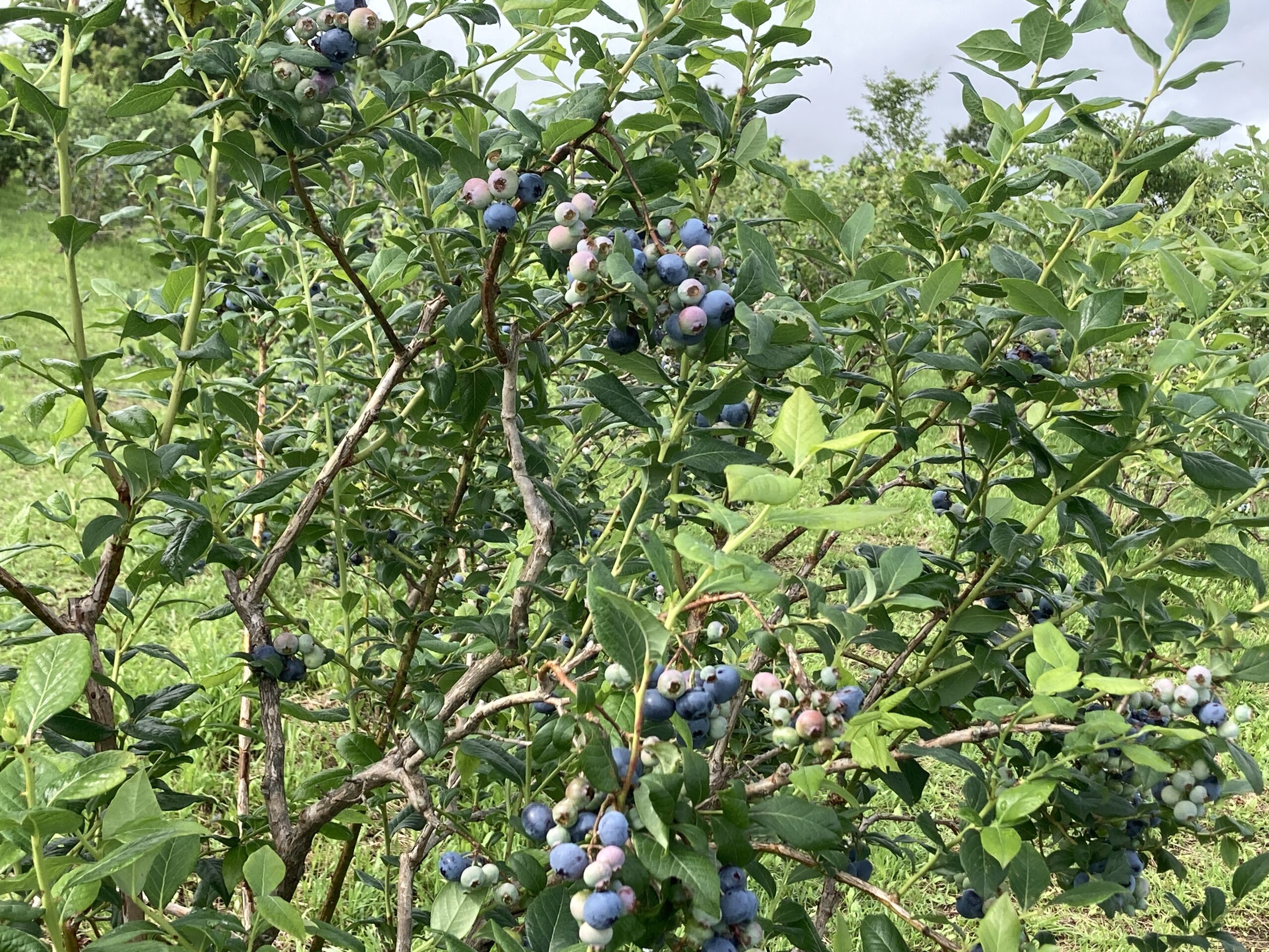 7月1日、3日と大雨になり畑の一部が流れてしまいました。 ひまわり畑の下側の苗が土ごと流されました。スタッフが懸命に復旧作業をしています。 ひまわり畑の横のコキアは無事です。 摘み取り体験が始まったばかりのブルーベリーも雨風でかなり熟した実が落ちましたが まだまだ実がいっぱいついているので摘み取りは可能です。 今の時期の大粒の早生品種が超おすすめです。 天候とにらめっこが続きます。梅雨明けが待ち遠しい。