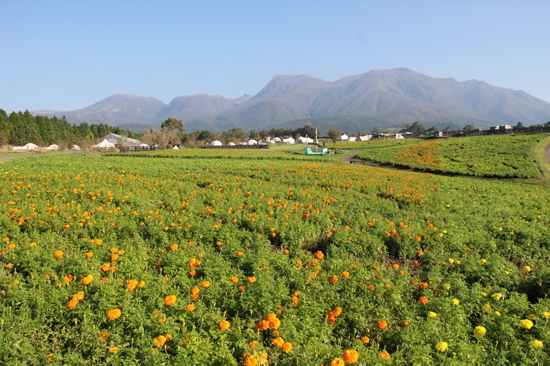 ▼ 今公開中 TV CM のマリーゴールド。 ・ 園内にある高原の彩りの丘 9000㎡ 約7万株のアフリカンマリーゴールドを植えています。 花の直径は約8cm ほどあり、とても大きな印象のお花です。 デザインもクッキリとしてきました。もうすく、見頃を迎えそうです。