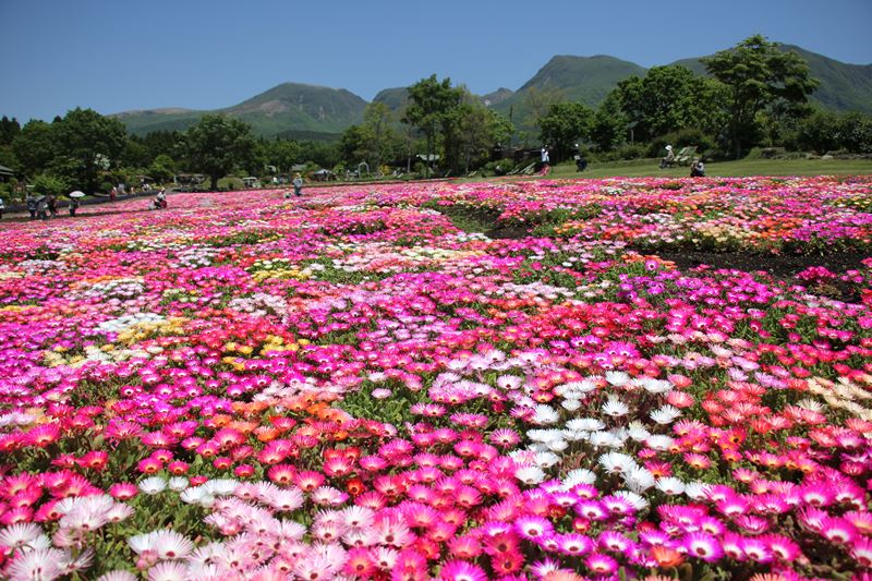 ・ 今日の花畑の様子です。 お出かけの参考にしてみてください** 花の宝石リビングストンデージー。 ・ お花のパレット春彩の畑(しゅんさいのはたけ)。 5色10種類の春の花を植えています。 ・ 空の青と溶け合う7万株のネモフィラ。 湖のような清々しい絶景が広がっています。
