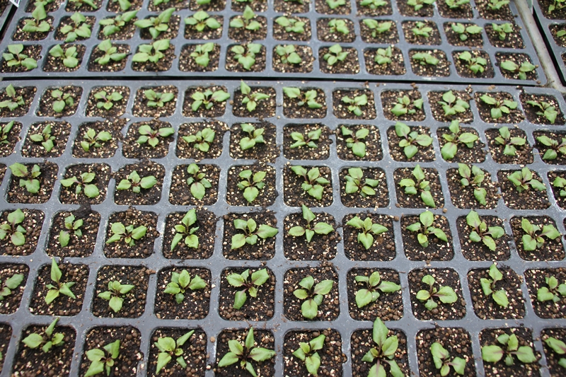 お花の種の種類や大きさによりますが、 くじゅう花公園では播種機を使って種まきを行います。 小さな種が成長し癒しの花畑になる事とを想像すると、 植物や自然の力は凄いなと感じます。 . こちらは種まきを終えて、発芽したロベリアの様子です** 小さいですが、葉の形や茎の色合いをみても、 ロベリアの特徴が分かります。とても愛らしいですね**