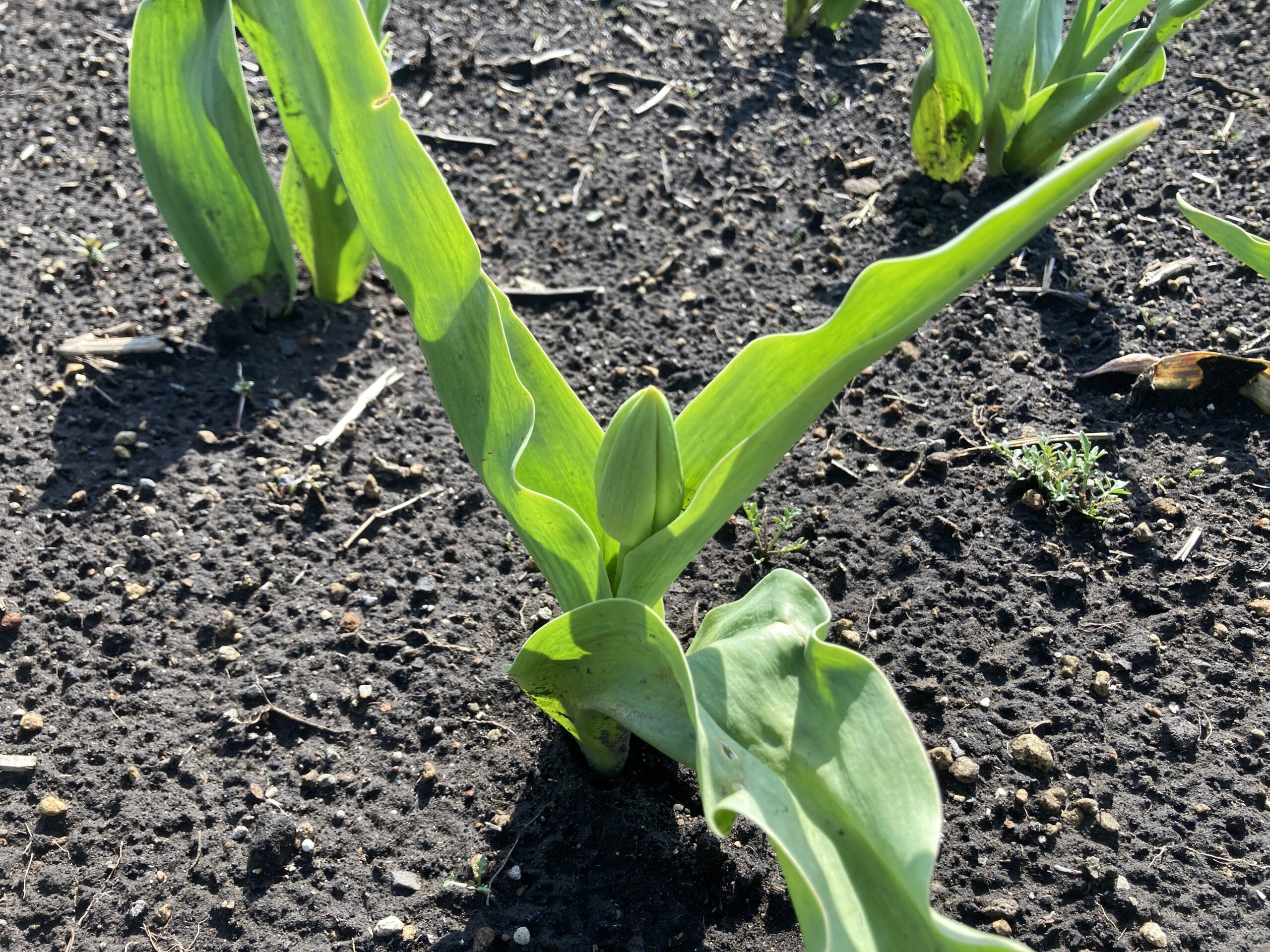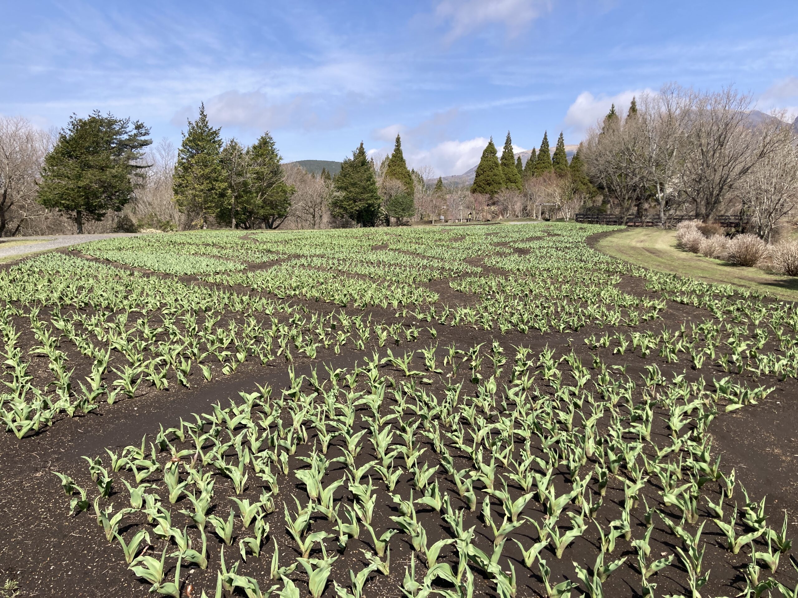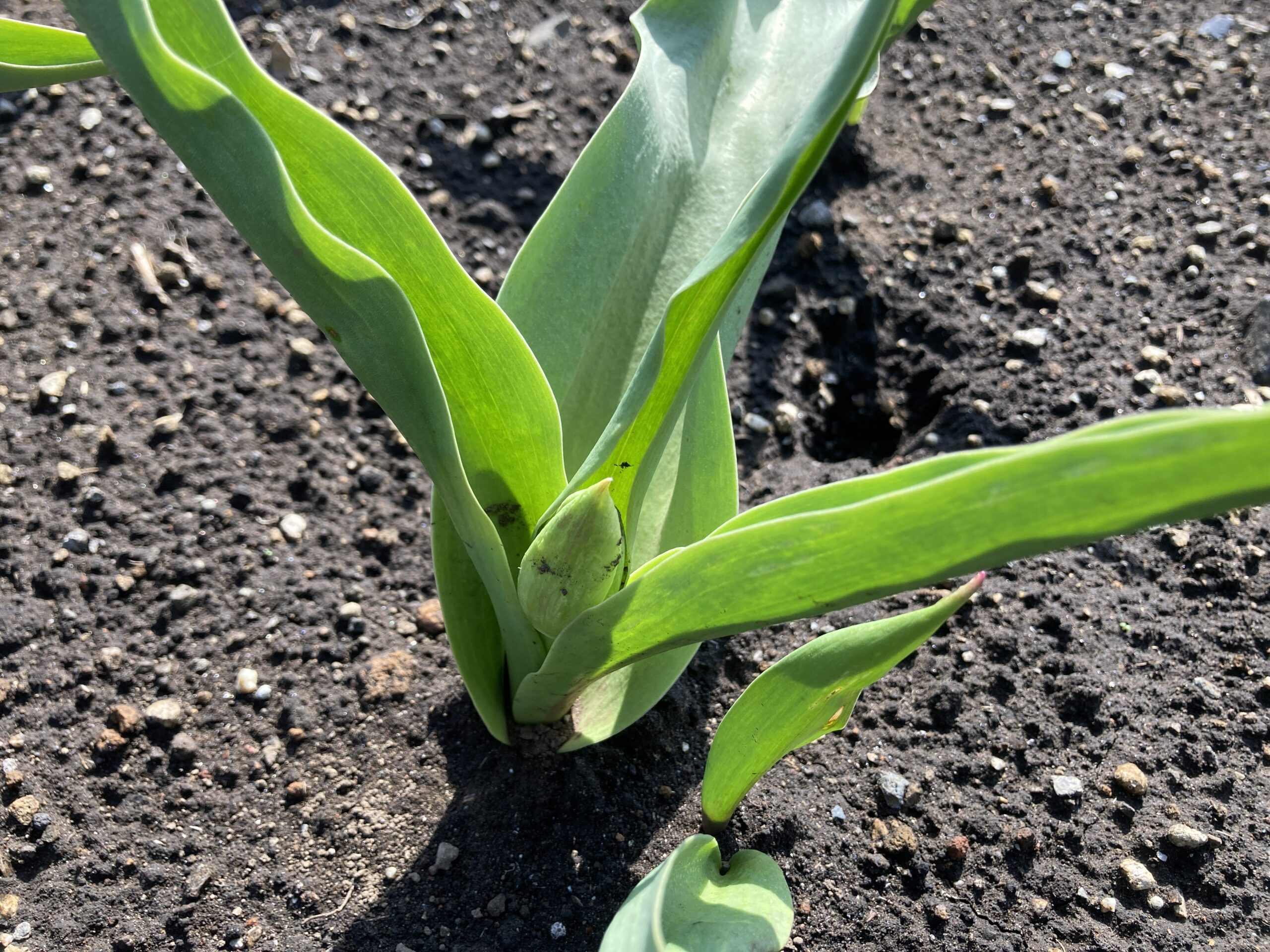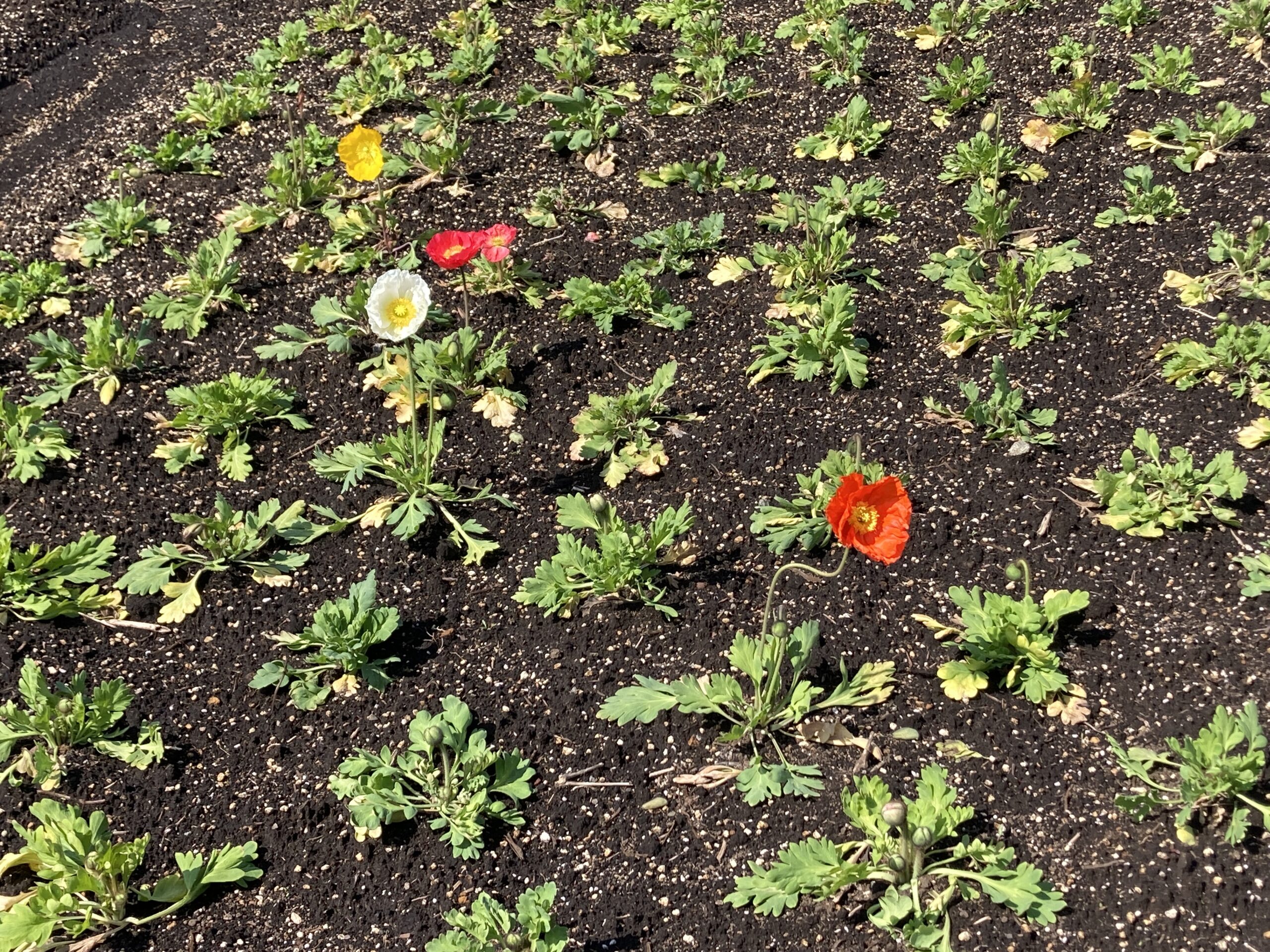 3/31現在のチューリップ畑の様子! つぼみはありますがまだまだ伸びていません。 例年並みの4/20頃から見頃になるか?こまめに開花状況をお伝えします。 1本だけ花が咲いている! ポピーは1番花がちらほら