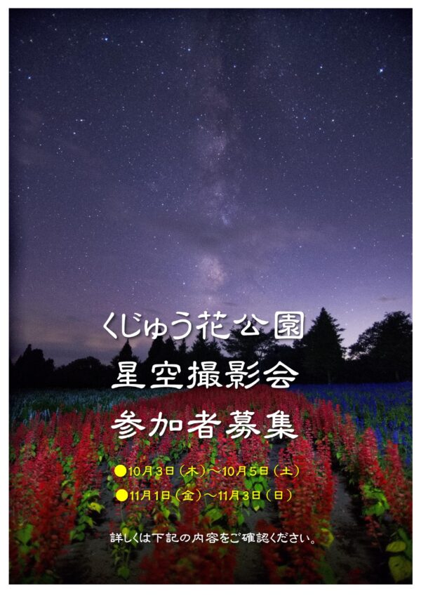 「秋の花々と久住高原の星 撮影会」 夜間撮影会開催について ご案内 **
