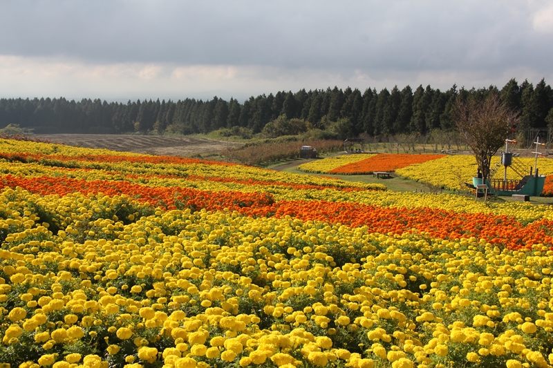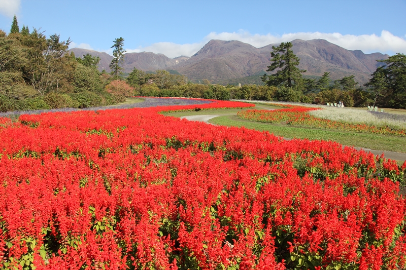 . 本日の園内の様。 綺麗な青空が広がりました。 7万株のマリーゴールドが圧巻です。 エネルギーチャージできそうな花の丘です。 . 花の丘は広いため、様々な角度で楽しめます。 . 青空にベゴニアのコントラストが映えて素敵です。 . 真っ赤なサルビアが印象的です。 . 台風の影響がありますが、綺麗に咲いています。 10月下旬頃まで開花予定