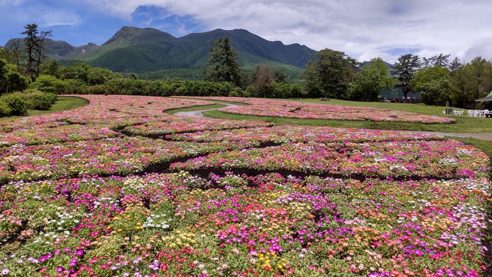 ハナハチくん 梅雨の晴れ間。 くじゅう連山は美しい新緑に包まれ清々しい気分です。 九州は昨年より27日も早い梅雨となりました。 本来は5月末までは春のお花が綺麗なシーズンですが、 入梅後は早くも大雨となり、 雨の影響で少しずつ終盤を迎えてきているエリアもございます。 晴れ間が顔を出すと、一部回復するエリアもあると思いますが、 ご来園予定のお客様はお電話にて開花状況をご確認ください。 ・ ▼ リビングストンデージー