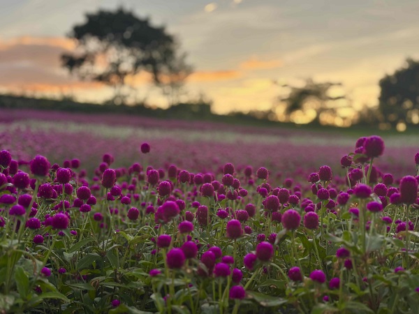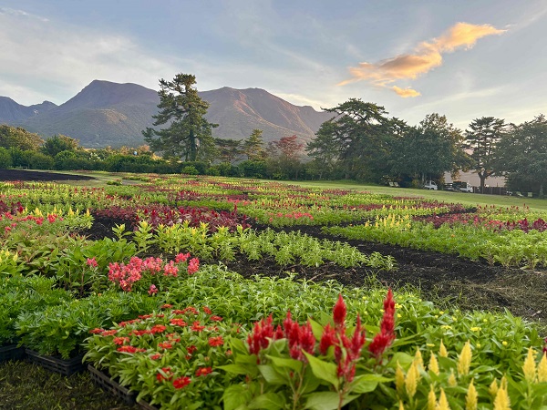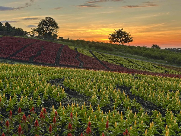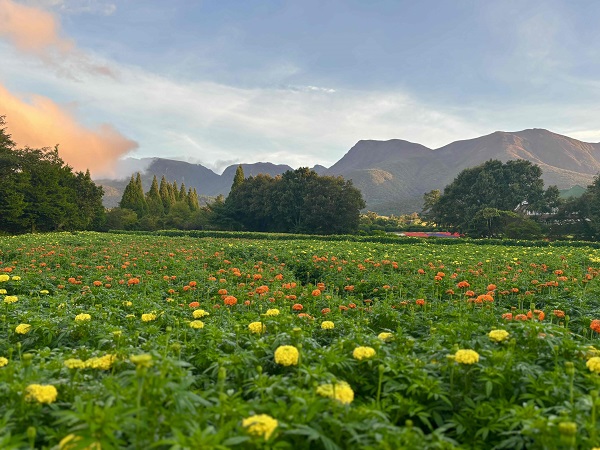 グランピングをご利用頂くとこんな高原の朝が迎えられます! グランピングエリア下の7万株のケイトウ畑 3万株の千日紅 くじゅう高原の爽やかな朝の景色、空気、風を堪能出来ます!早起きして散歩をぜひ! ゆっくりと散歩が楽しめます! 天気が良ければ阿蘇の五岳も一望出来ます!