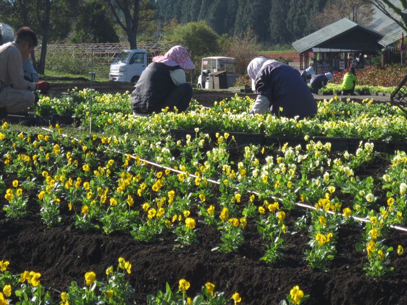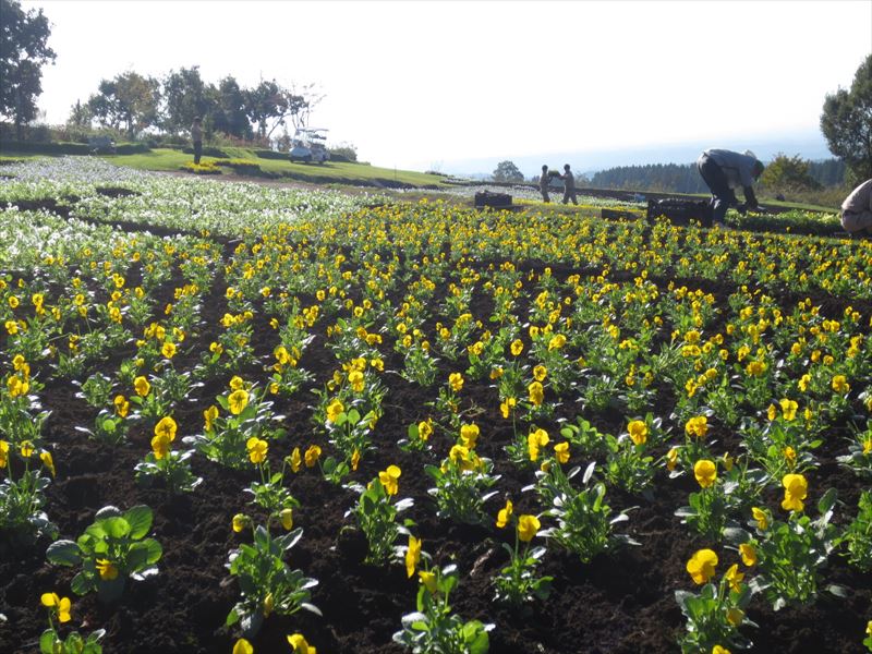 ・ ・ 天候に恵まれ、サルビア畑から、 パンジーへ植え替え作業が始まりました。 ↓ ↓ ・ ・ 黙々と植え付け作業が進みます。 ↓ ↓ ・ ・ 彩りの丘 パンジー 11月下旬頃まで、 見頃予定となっております。 ↓ ↓ ・ ・