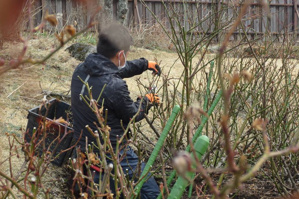 冬の間から ずーっと、 バラの剪定作業をしていました。