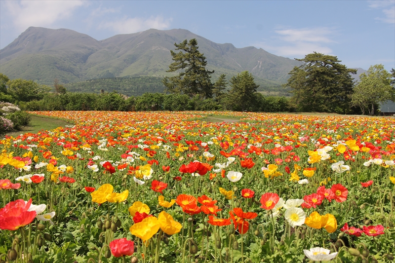 ポピーが満開となりました。 久住高原の風にゆれるポピーが心地よさそう。 先週花柄を摘み取る作業を行ったので、 今凄く綺麗です!!** 園内みはらしの丘に広がるポピー。 この丘に植え付けしたのは、 開園して初めての チャレンジ とのこと。 どの丘にもポピーは似合います** また、このビタミンカラーの花色には、 不思議と元気をもらいます。 ↓ ↓